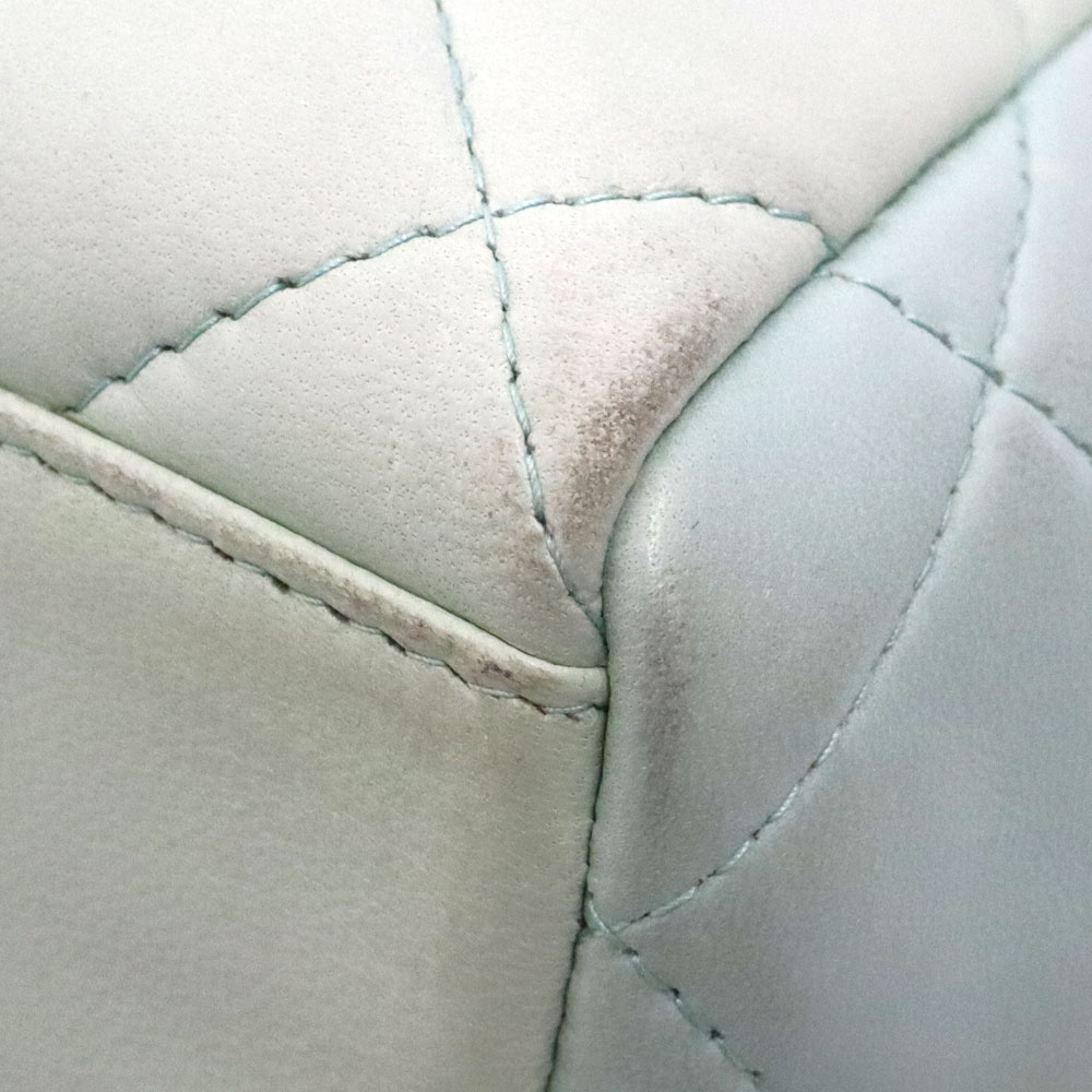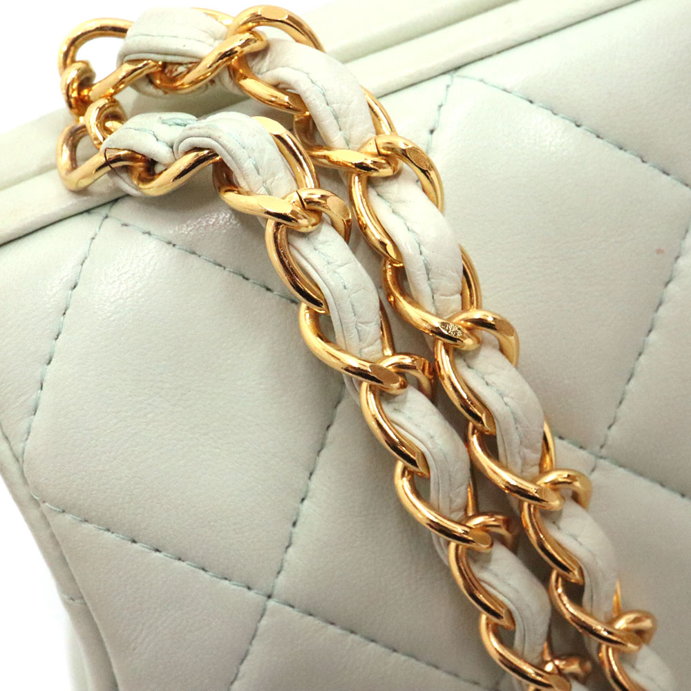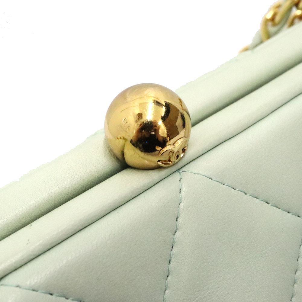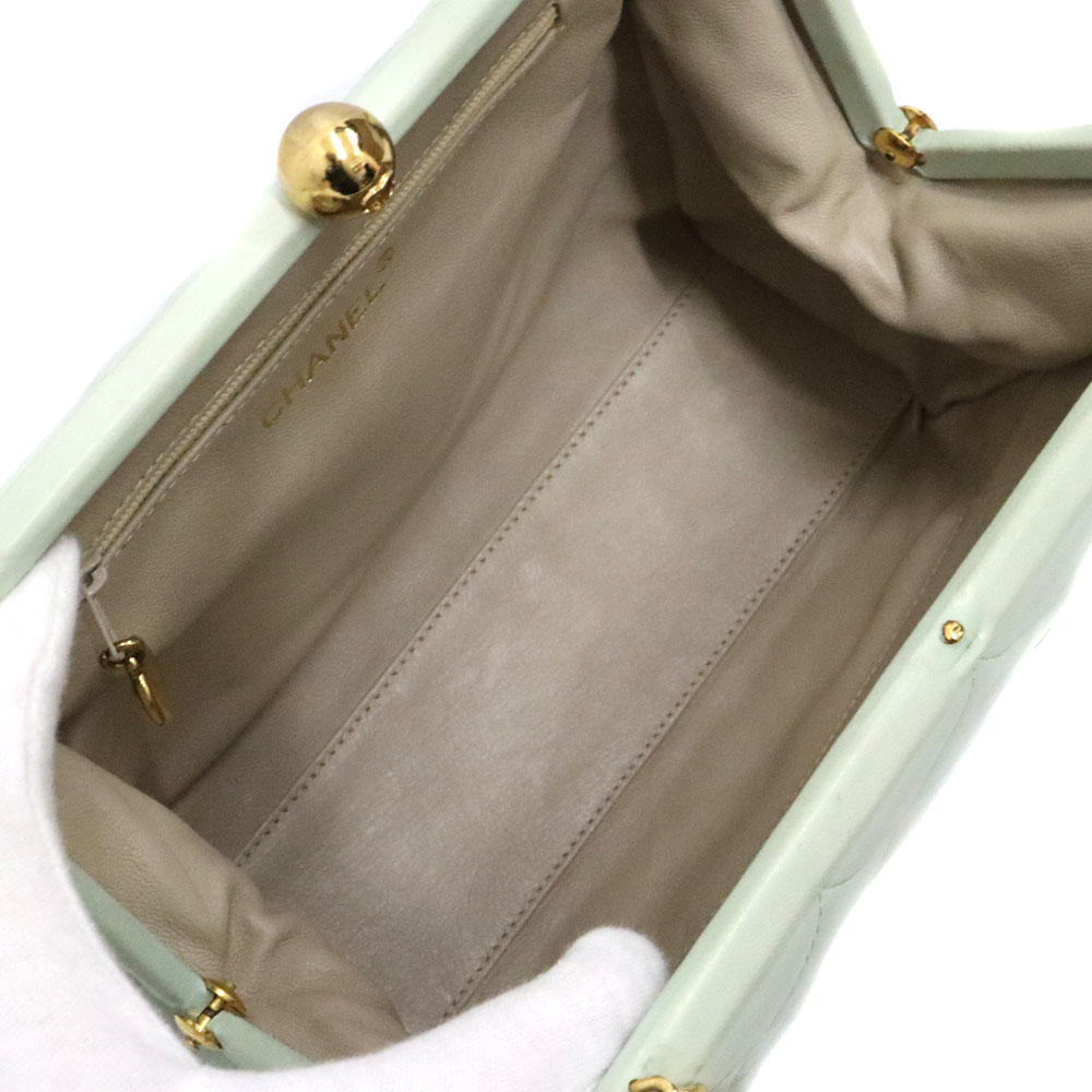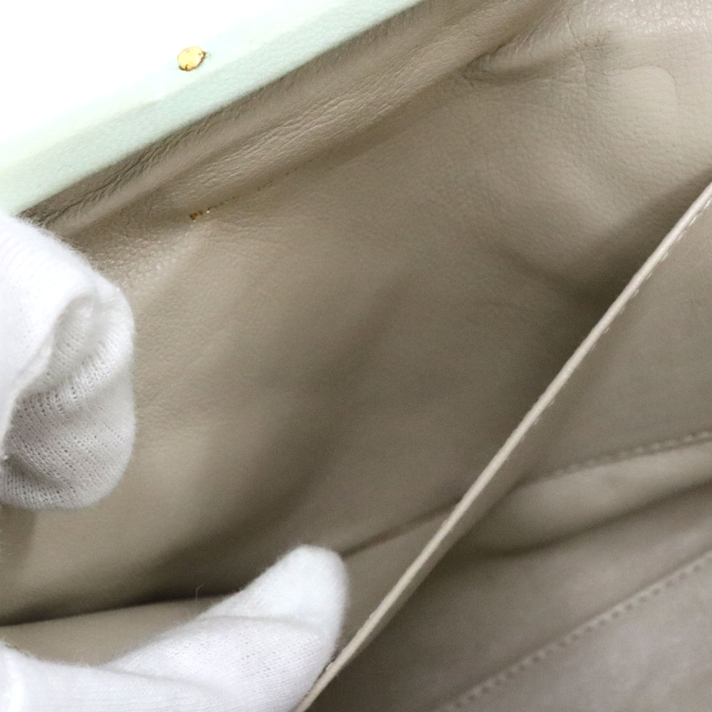 手触りの良いラムスキンで作られたチェーンハンドバッグとなります。 がま口開閉式で、コロンとしたフォルムとミントグリーンのカラーが可愛らしいバッグです。 この機会に是非いかがでしょうか。