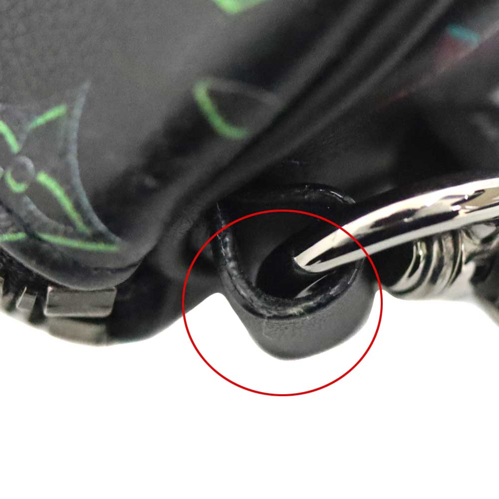 ブラックレザーをベースに色鮮やかな蛍光色のモノグラムが映える、存在感抜群の小物入れです。 ミニサイズで非常に可愛らしく、小物の持ち運びにぴったりのサイズ感となっています。 希少性が高く、コレクターズアイテムとしても人気です。 お探しの方は是非いかがでしょうか。