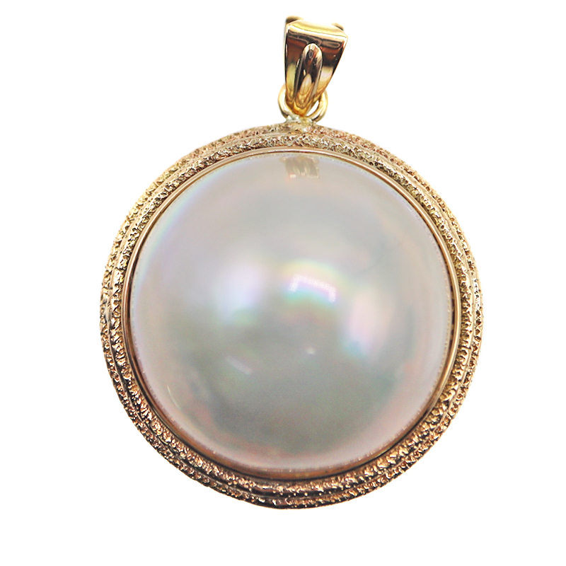 やわらかな光沢が魅力の養殖半形真珠を使用した、上品なペンダントトップです。