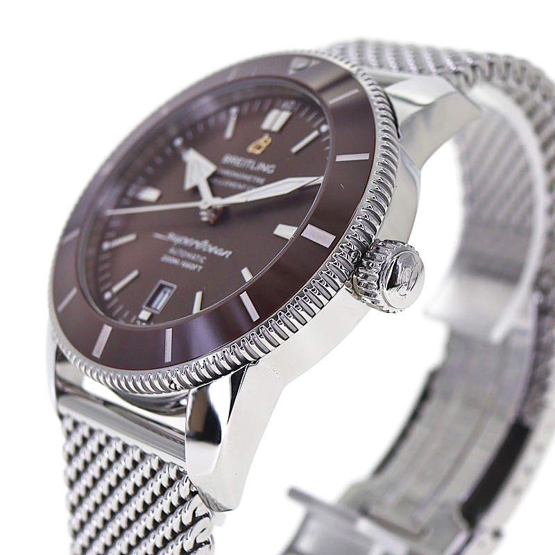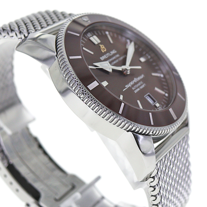 ブライトリングを代表する人気ダイバーズコレクションです。 スーパーオーシャンヘリテージは1957年に発表された復刻モデルになります。 46mmの存在感ある大きさでシンプルでヴィンテージな風合いが魅力なデザインです。 カジュアルシーン、フォーマルシーンと兼用でお使い頂ける万能ウォッチです。 お探しの方はこの機会に是非いかがでしょうか。
