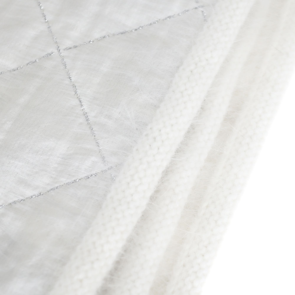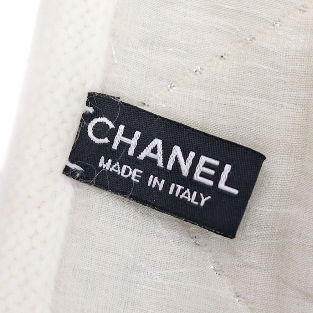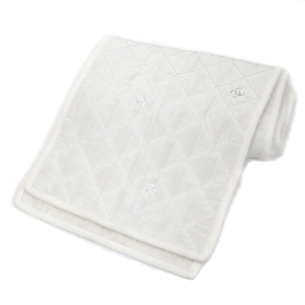 キルティングデザインがシャネルらしいマフラーです。 ホワイトカラーにシルバーラインとココマークがアクセントになっています。 大判サイズなので使い勝手も防寒もばっちりです。