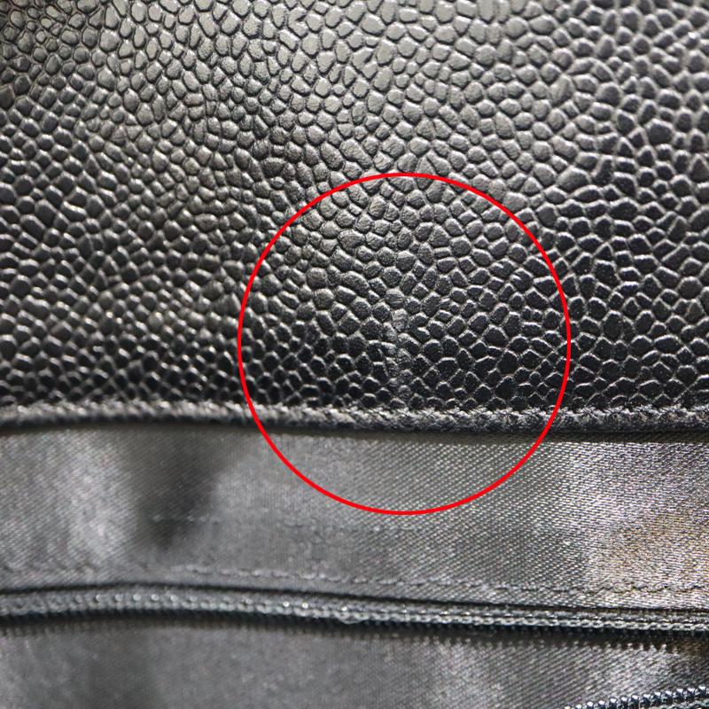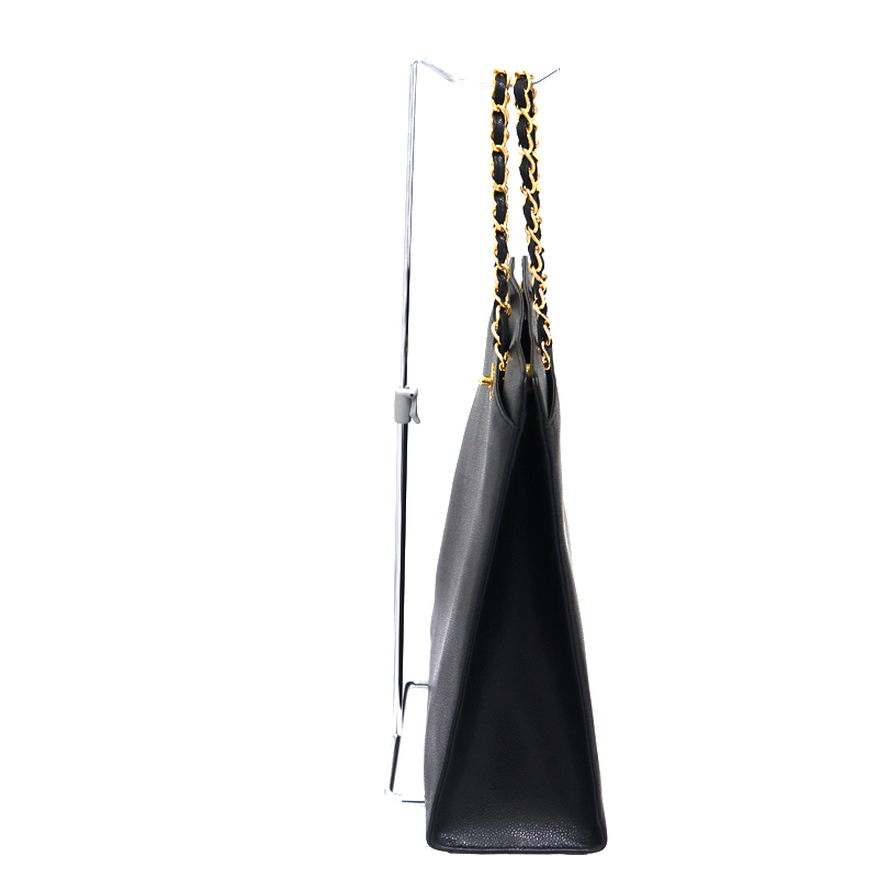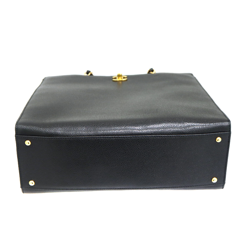 シャネルを代表する定番素材「キャビアスキン」を使用した、上品で存在感のあるチェーンハンドバッグです。