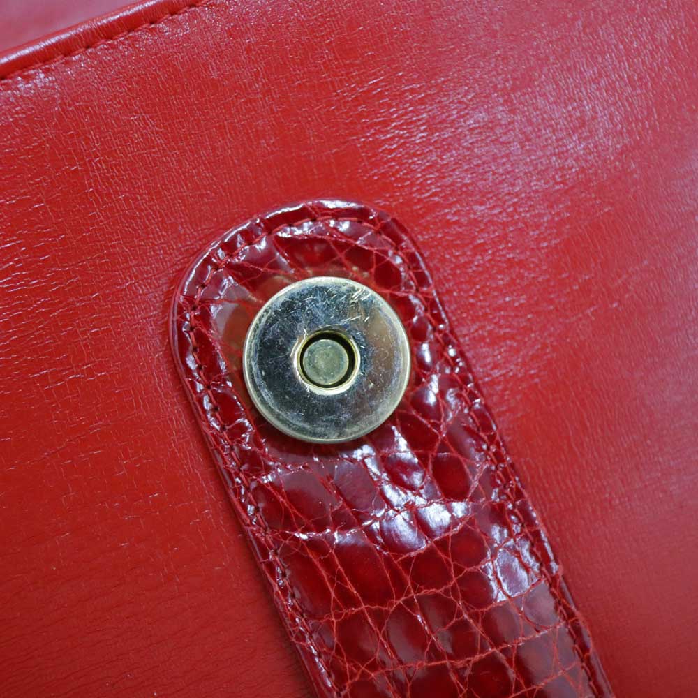 深みのあるレッドカラーが印象的な、コーディネートの主役になるバッグです。 フロントにはティファニーの頭文字である「T」の形をした、クロコダイル調の型押しレザーがアクセントとして施され、さりげない高級感を演出しています。 この機会に是非いかがでしょうか。