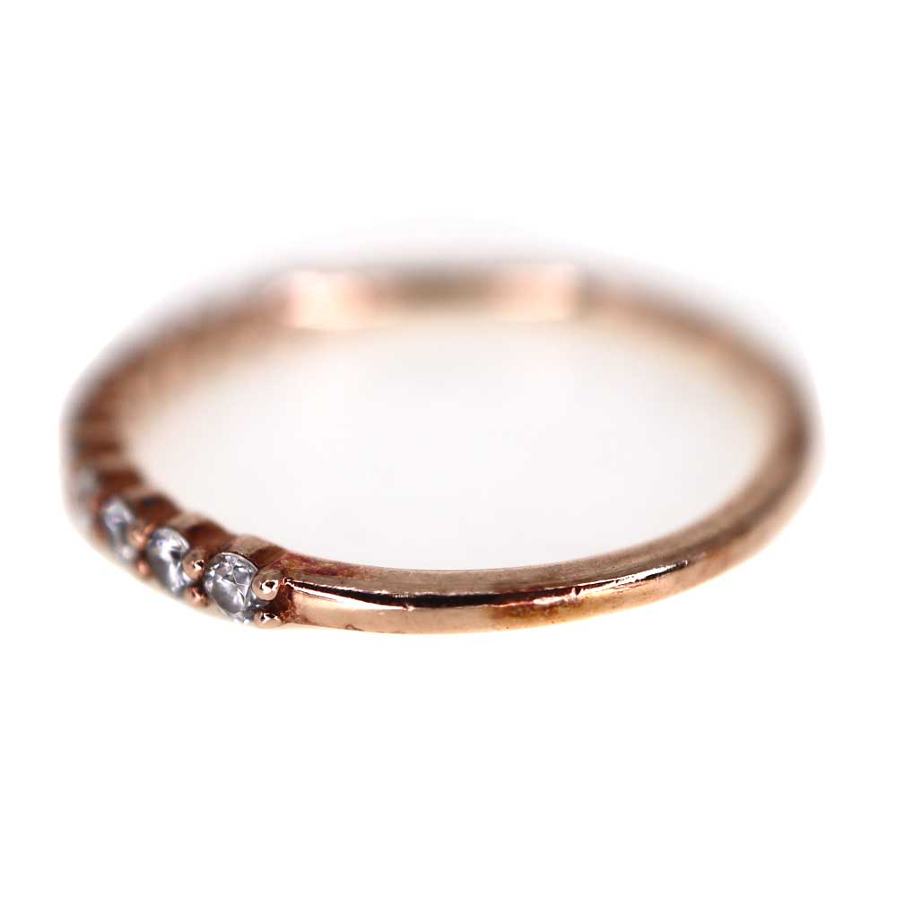 細身のアームにキュービックジルコニアを一列にセッティングしたデザインで、繊細ながらも華やかな印象を与えます。 ピンクゴールドカラーは肌なじみが良く、日常使いにも適しています。 1本での着用はもちろん、重ね付けにも相性が良いです。 この機会にぜひいかがでしょうか。