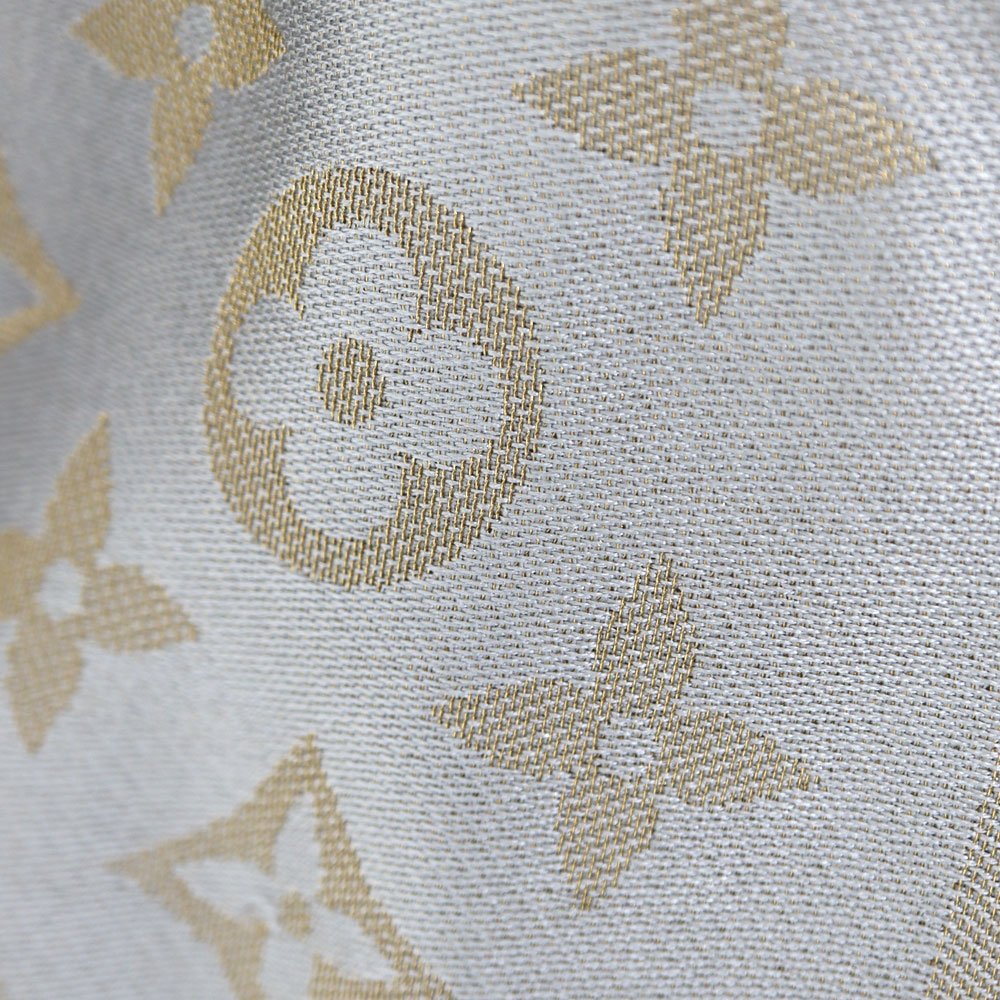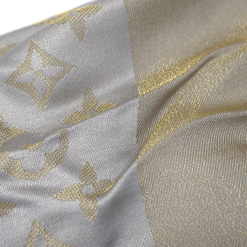 スカーフにもストールにもなる大判サイズが使いやすいアイテム。 光沢感があるグレーカラーとゴールドがゴージャスで華やかさを演出してくれます。 モノグラムの総柄になっているので、コーディネートのアクセントにピッタリです。