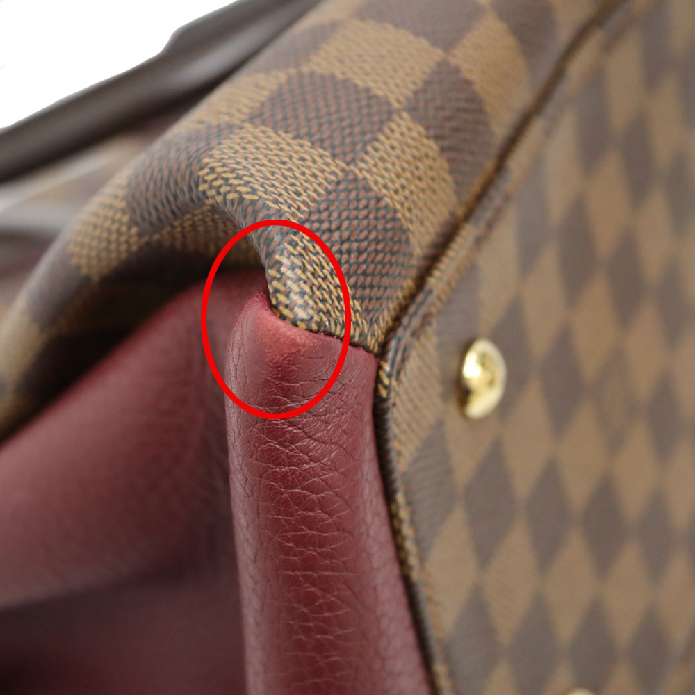 人気のダミエキャンバスを使用した上品で実用的な2wayバッグです。 サイドやハンドル根元部分などに使われているボルドーレザーがアクセントの、素敵なデザインのバッグです。 大きさも丁度よく、普段使いからちょっとしたお出かけまで幅広く活躍してくれますよ。 この機会に是非いかがでしょうか。