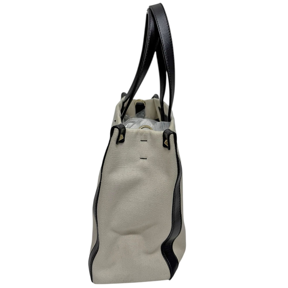 ヴァレンティノのロゴが大きく正面にデザインされているトートバッグです。 お色がオフホワイトのキャンバス素材ですので、爽やかな印象の逸品です。 間口が大きく開きますので、荷物の確認や出し入れがしやすく、通勤や通学に便利なアイテムです。 斜め掛けが可能なショルダーストラップが付属しておりますので、2WAYでお使いいただけます。 カジュアルファッションにもお使いいただけます。 お探しの方はこの機会に是非いかがでしょうか。