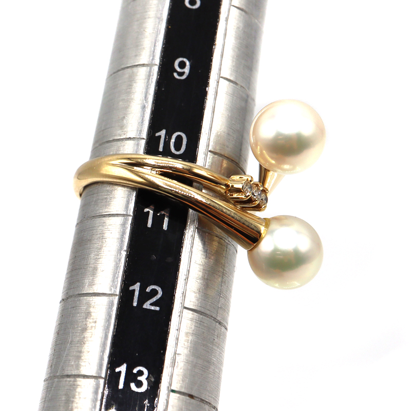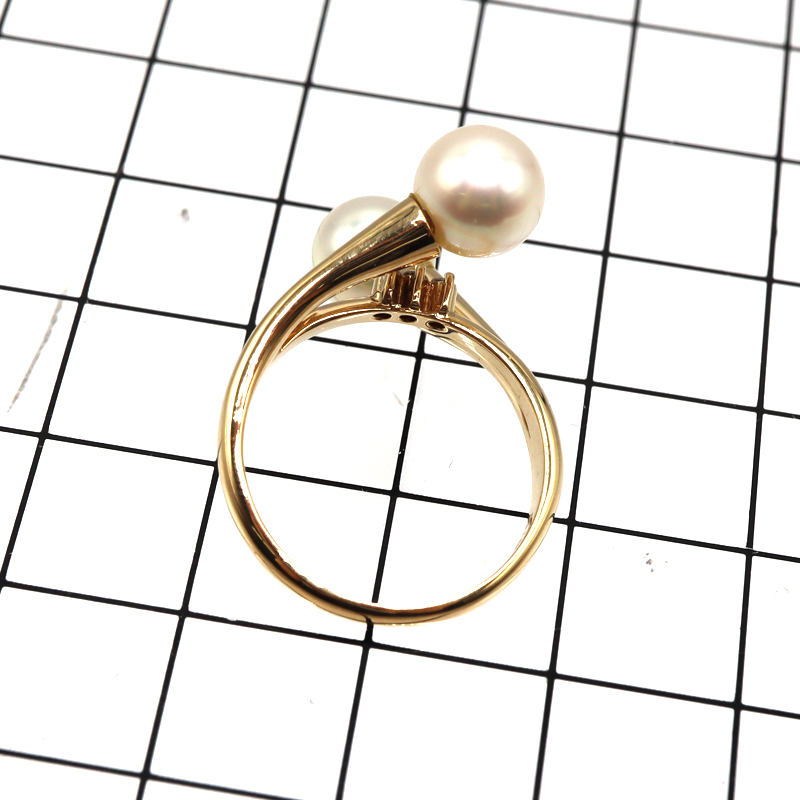 K18素材に、上品な輝きを放つアコヤ養殖真珠をあしらったリングです。