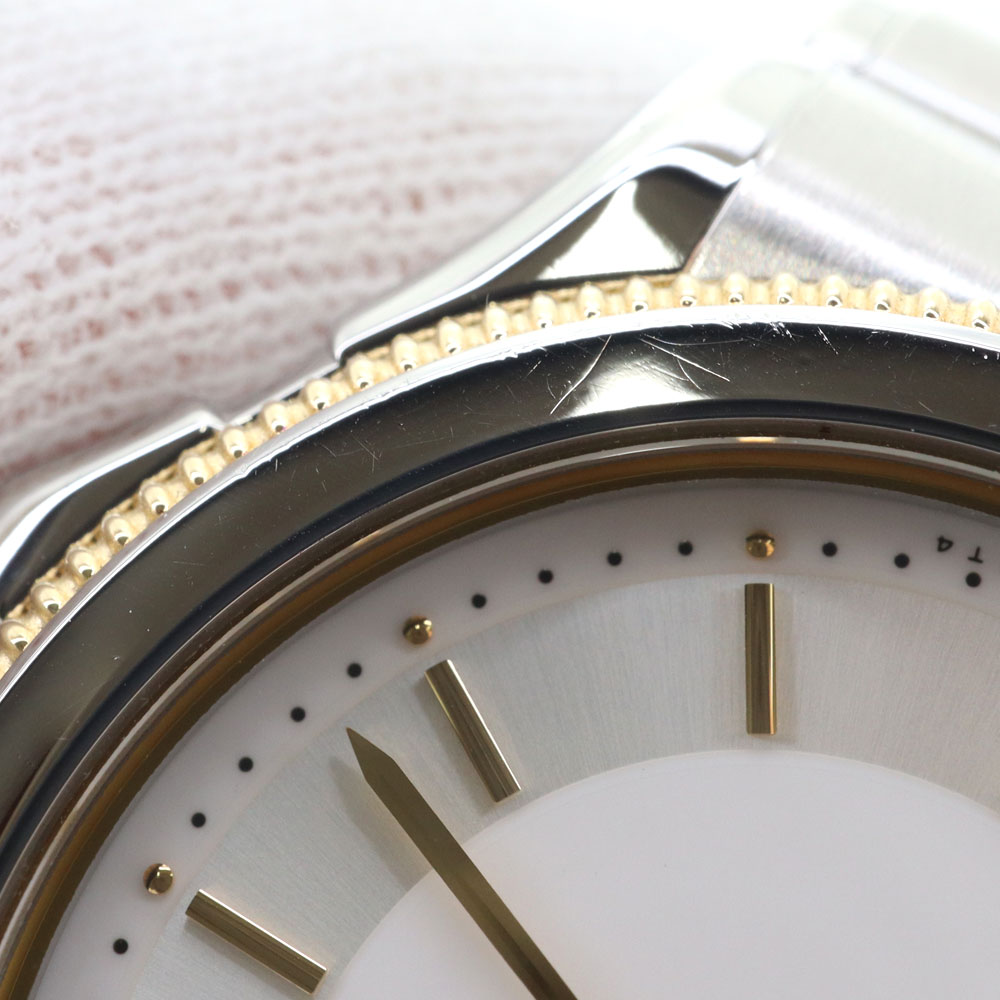 | 素材 | ケース:ステンレススチール×K18イエローゴールド(18KT記載あり) ブレス:ステンレススチール×K18イエローゴールド(18KT記載あり) ダイヤル:ホワイト文字盤 風防(ガラス):ガラス風防 |