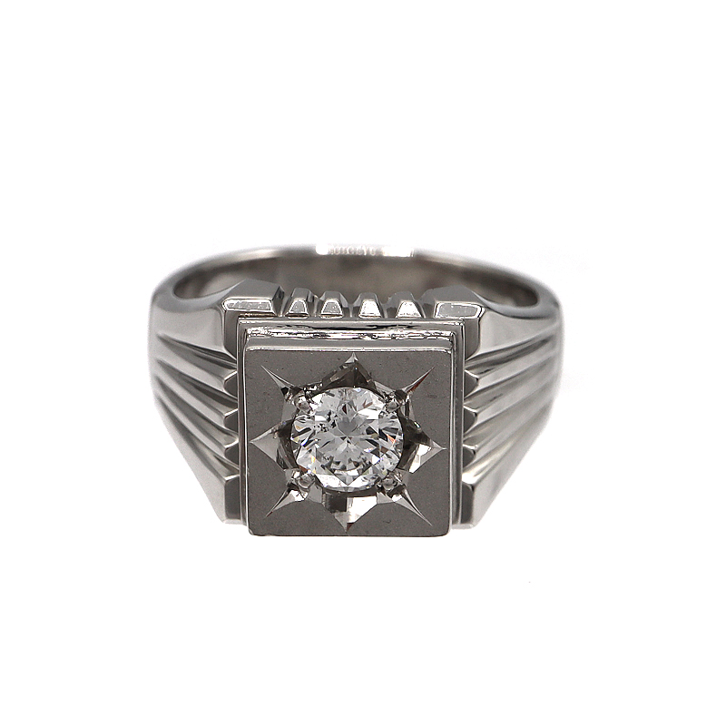 Pt900の上質な輝きが魅力の印台リングに、存在感のあるダイヤモンド(0.515ct)をあしらった一本です。