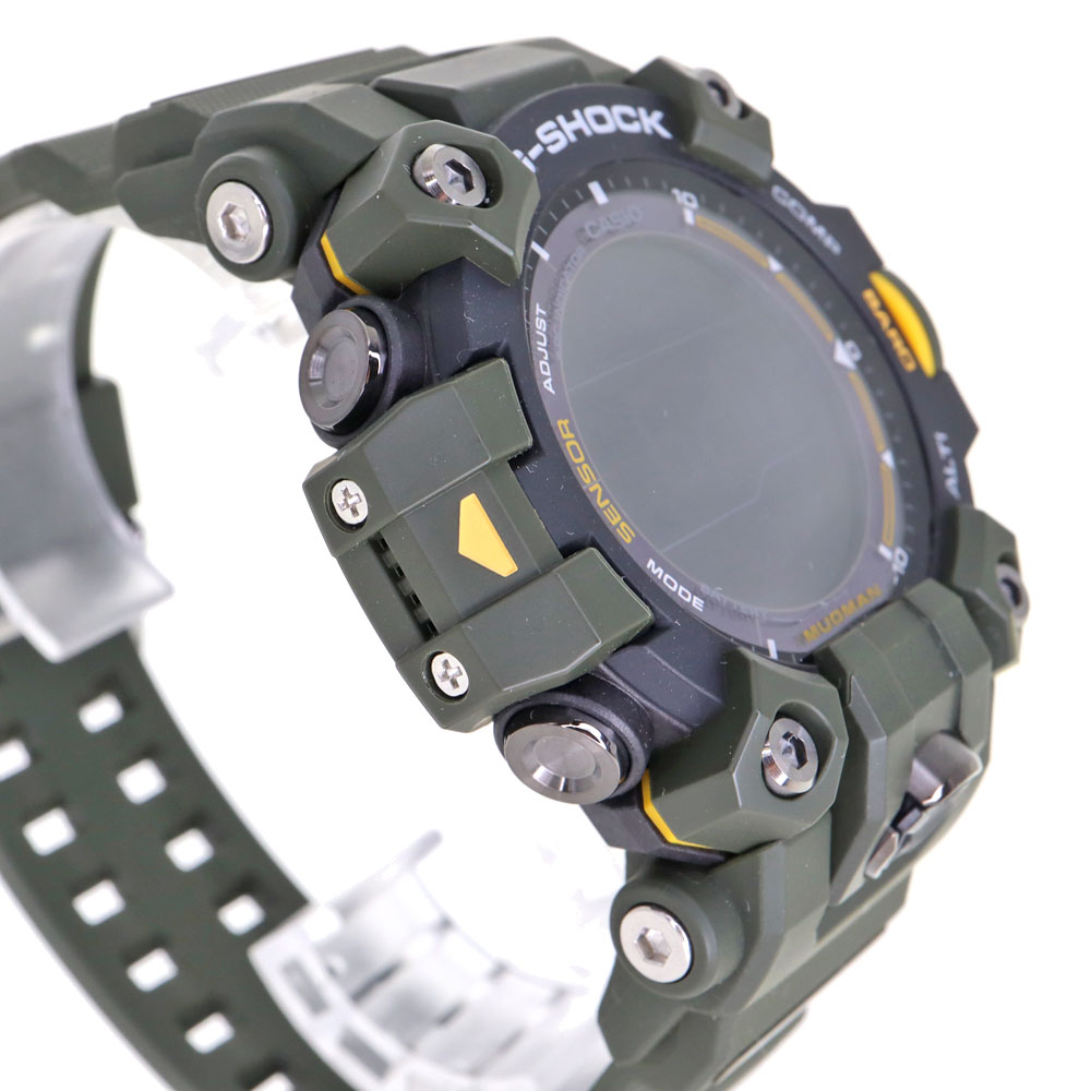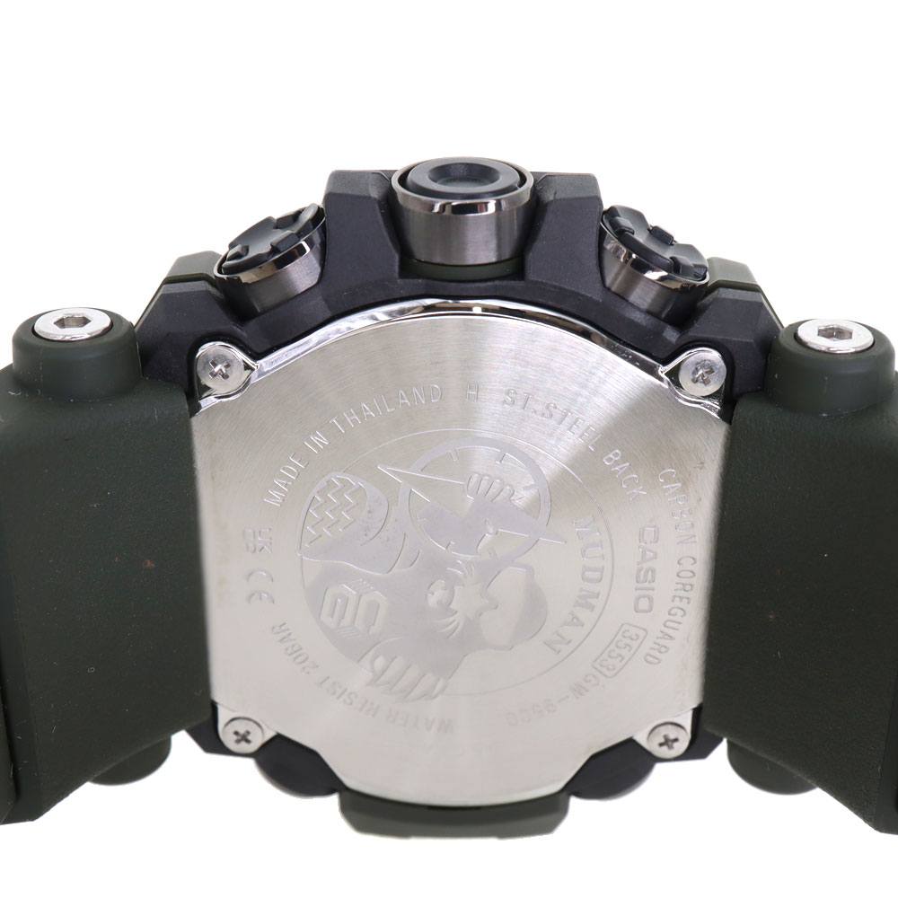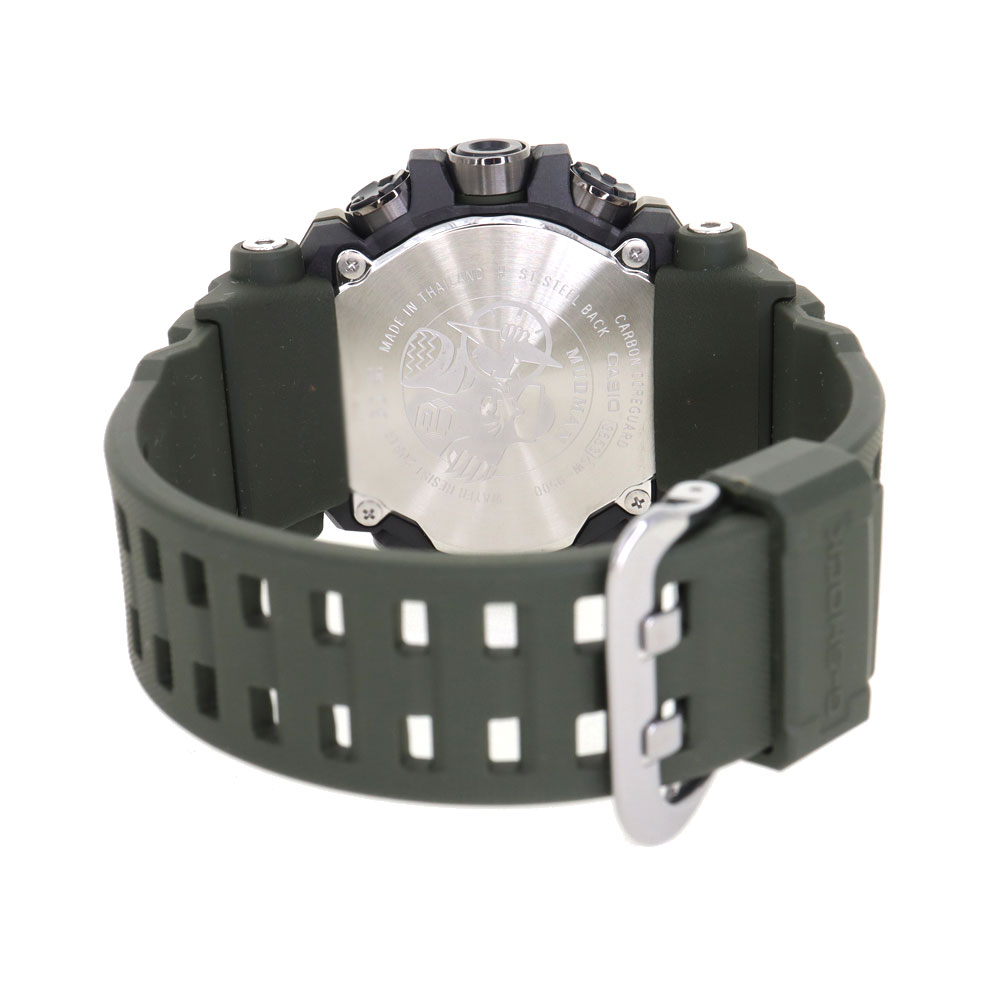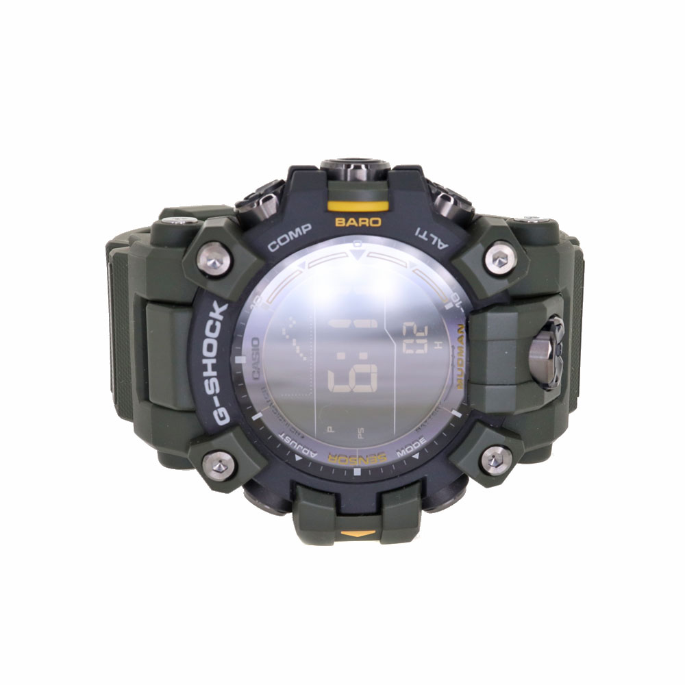 過酷な自然環境に立ち向かう男たちをサポートする「G-SHOCK MASTER OF G」シリーズです。 こちらは泥や塵に強いマッドレジスト機能を搭載したマッドマンとなり、高度・方位・気圧と温度のトリプルセンサーモデル。 トリプルセンサーや二重液晶に加えた多機能は優秀で、薄型モジュールやカーボンコア構造を採用することにより、薄型・小型化を実現しています。 落ち着いたグリーンカラーがかっこいいカジュアルなお時計です。 お探しの方はこの機会にぜひいかがでしょうか。