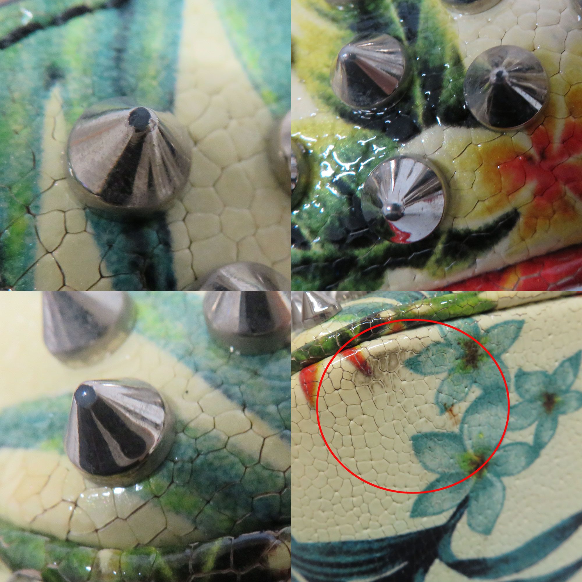 | 商品状態 | ・ファスナー固め ・レザー部分スレ ・金具キズやくすみ ・一部スタッズに剥がれあり ・底に汚れあり ・付属の箱と布袋に汚れあり |
