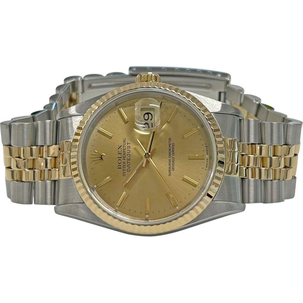 | 商品説明 | ロレックスのデイトジャスト36(モデル番号16233)は、ステンレススチールとイエローゴールドのコンビネーションが特徴の腕時計です。デイトジャストは、1945年に初めて発表されたモデルで、3時位置に日付を表示する機能を備えています。16233は、1980年代後半から1990年代にかけて製造され、堅牢で信頼性の高い自動巻きムーブメントを搭載しています。ベゼルはフルーテッドデザインで、ダイヤルのバリエーションも豊富で、ラグジュアリーな印象を与えます。ジュビリーブレスレットを装備している場合が多く、エレガントで快適な着用感が得られます。
