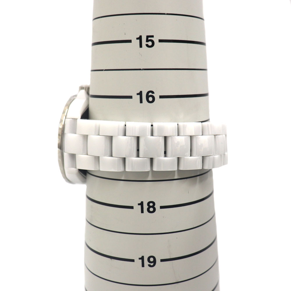 シャネルを代表するアイコンウォッチ「J12」のホワイトセラミックモデルです。 艶やかなホワイトセラミックケースとブレスレットに、ホワイト文字盤を組み合わせた洗練されたデザインが特徴の時計です。 インデックスには12Pのダイヤモンドを配し、スポーティさの中にエレガントな輝きをプラスしています。 逆回転防止ベゼルやデイト表示も備えており、実用性と高級感を両立。 この機会にぜひいかがでしょうか。