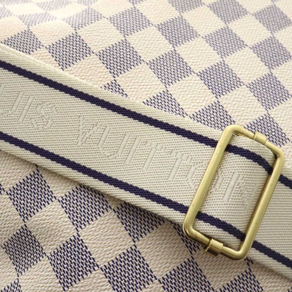 ホワイト×ネイビーの格子柄が特徴のダミエ・アズール素材となっています。 日常使いに使いやすい大きさで、長財布も問題なく収納可能です。 この機会に是非いかがでしょうか。
