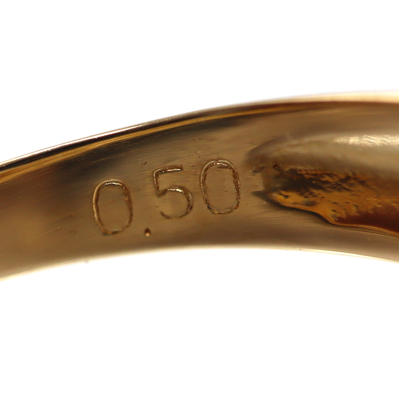 上質な素材と繊細な輝きをまとった、大人の女性にふさわしいダイヤモンドリングです。センターにあしらわれた0.50カラットのダイヤモンドが光を受けて上品に煌めき、手元に優雅な存在感を演出します。