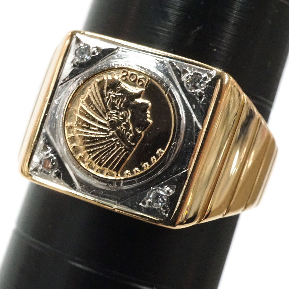 コインがセッティングされたシンプルながらも存在感のあるデザインのリングです。 お手元のアクセントにおすすめです。