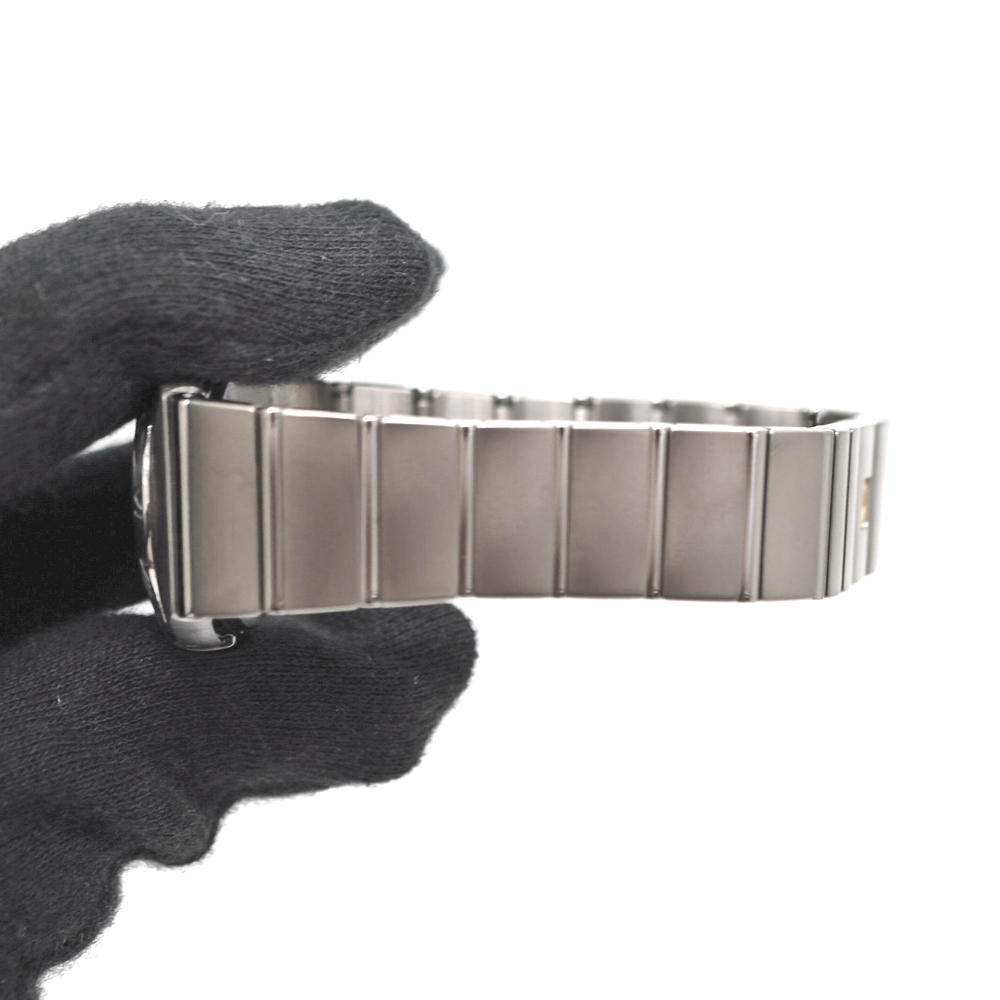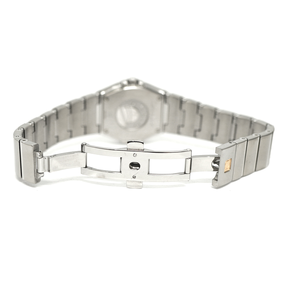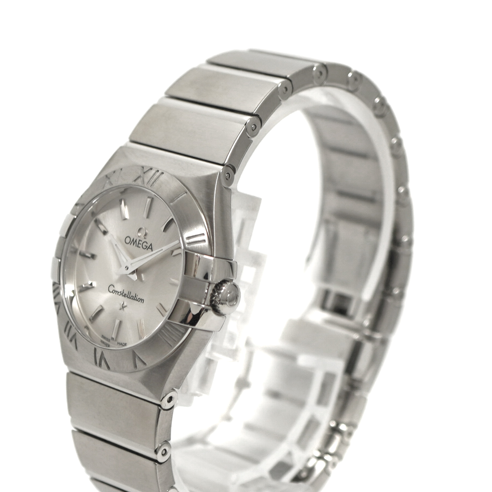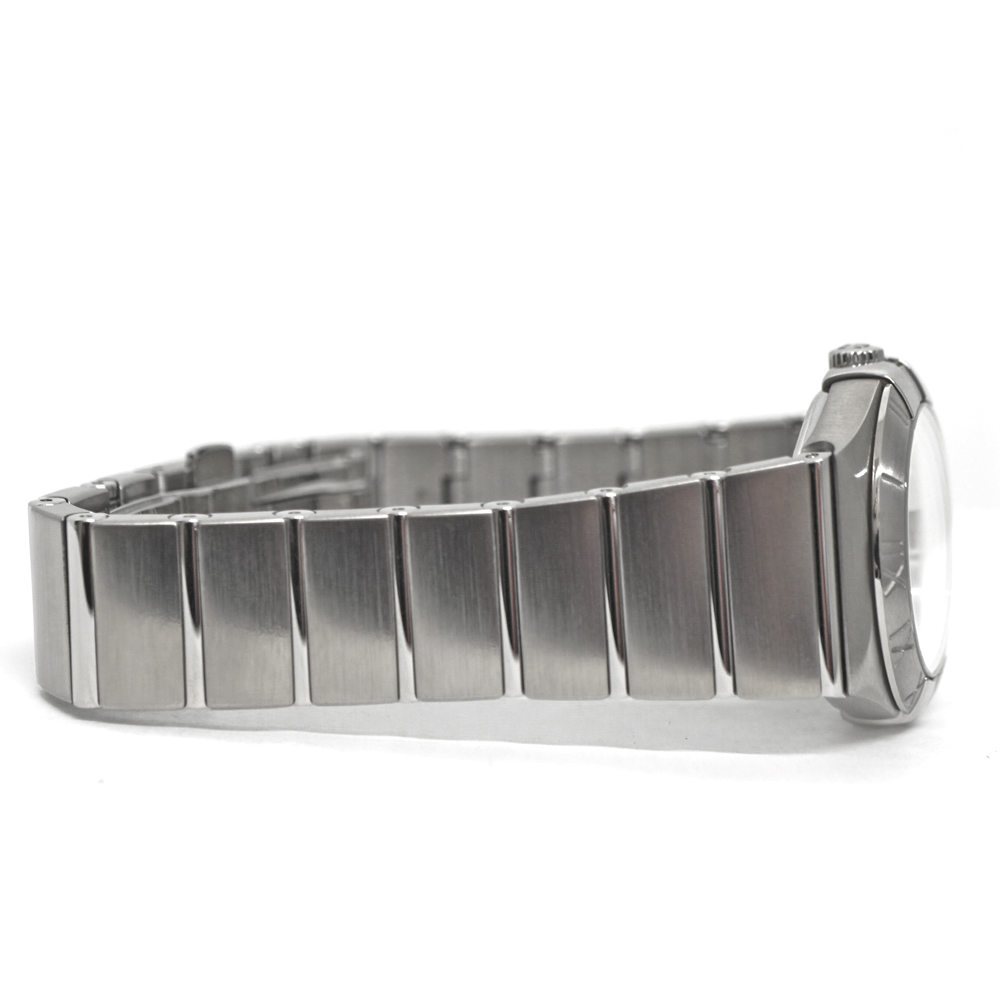 オメガの代表的なコレクションで人気を集めているモデルになります。 サテン仕上げモデルで傷の付きにくいサファイア・クリスタル ガラスからシルバーダイアルを眺めることができます。 ローマ数字が刻印されたべゼルも特徴的なデザインとなっております。 生産終了品となりますのでお探しの方はこの機会に是非いかがでしょうか。
