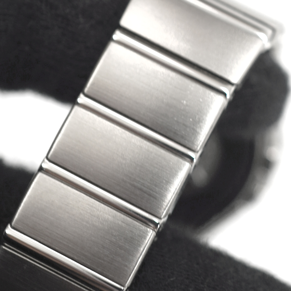 | 素材 | ケース:ステンレススチール ブレス:ステンレススチール ガラス:ドーム型サファイヤガラス ダイヤル:シルバー |