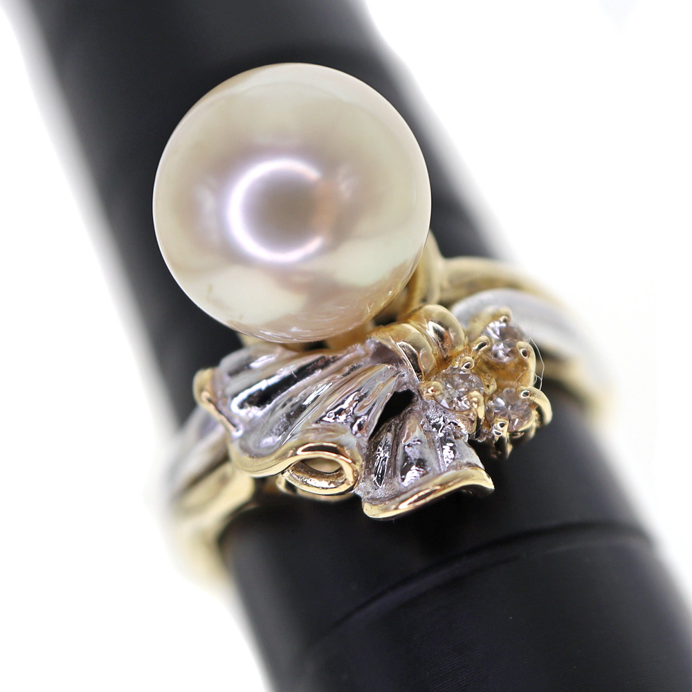 比較的大粒のパールがついた豪華なリングです。 この機会に是非いかがでしょうか。