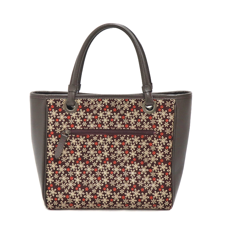 | 商品説明 | 印伝屋【インデンヤ】ハンドバッグのご紹介です。 鹿革(しかがわ)をなめし加工し、漆(うるし)で模様を施した日本の伝統的な革工芸品です。 軽くて柔らかい鹿革に漆で描かれた模様は、使うほどに深みと光沢が増し、財布や小物などに広く使われています。