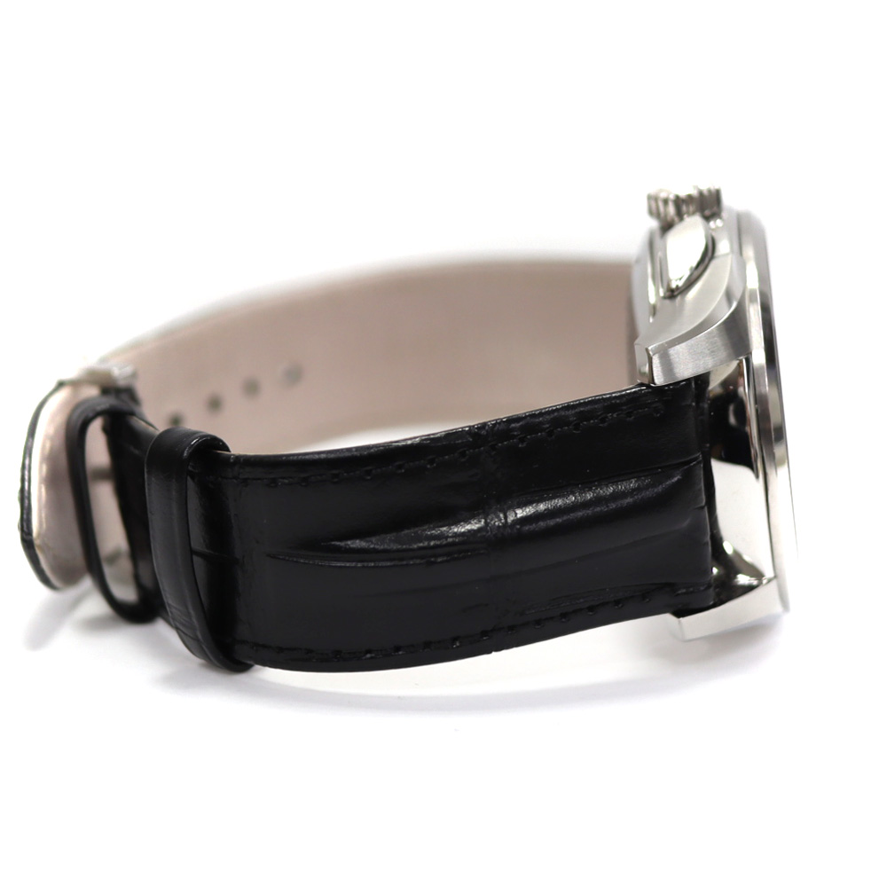 | 素材 | ケース:ステンレススチール ブレス:レザー ダイヤル:ブラック 風防:サファイアガラス |