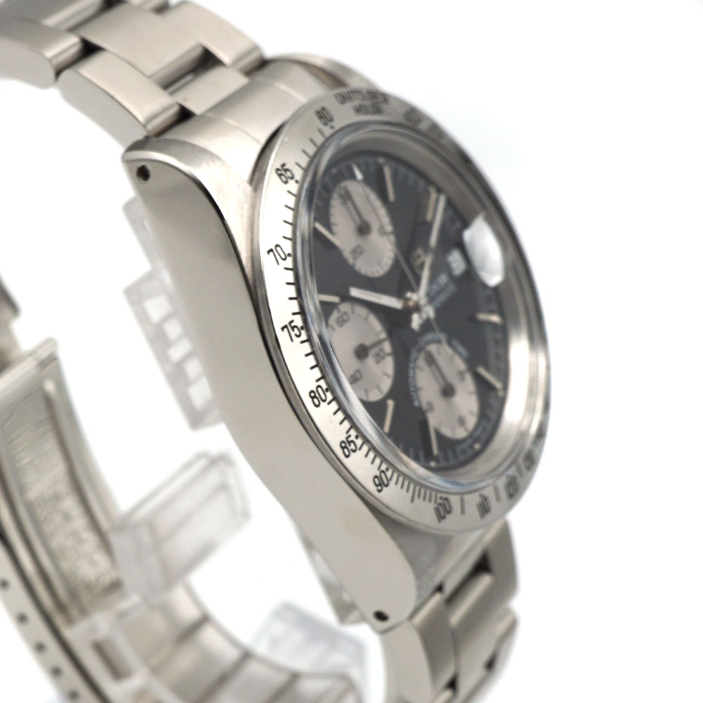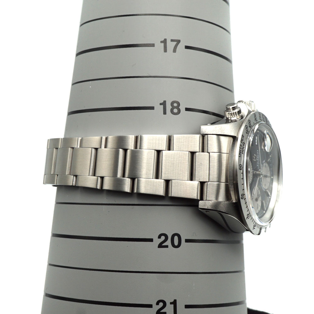 | 仕様 | 自動巻き ムーブメント:バルジュー7750 パワーリザーブ:約60時間 精度:+8~+10秒/日(平置き) クロノグラフ カレンダー 50m防水 |