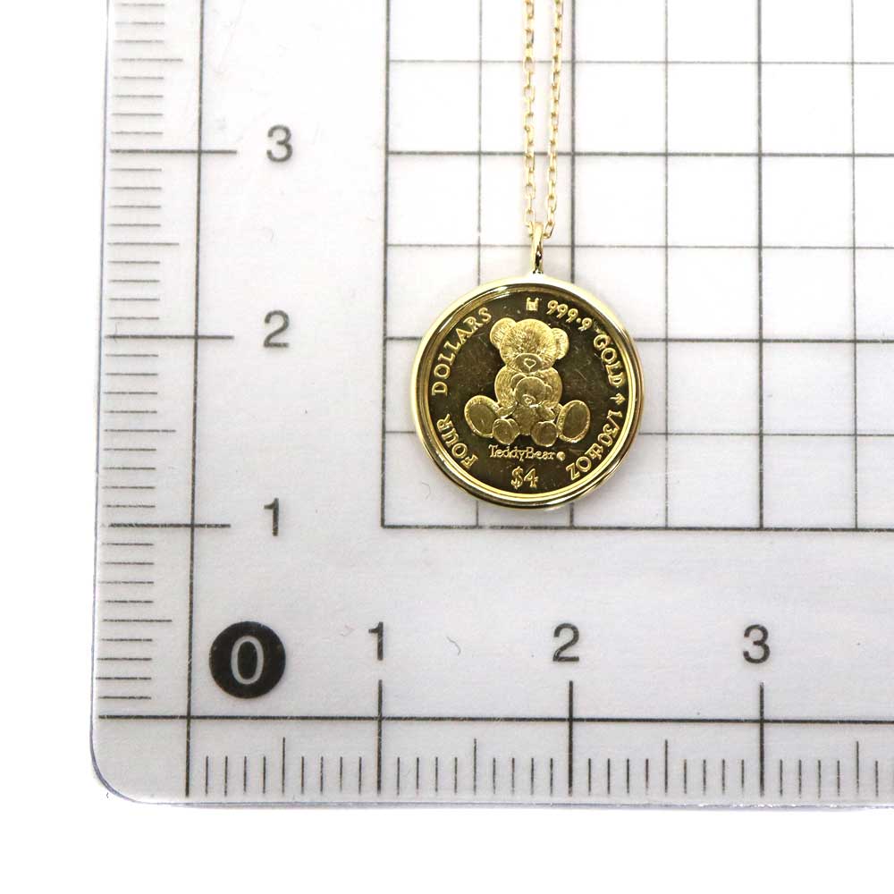 24金コインをモチーフにした、存在感あるネックレスです。 コインにはテディベアが描かれており、可愛らしい印象です。 資産価値としての安心感とジュエリーとしての美しさを兼ね備えています。 この機会に是非いかがでしょうか。