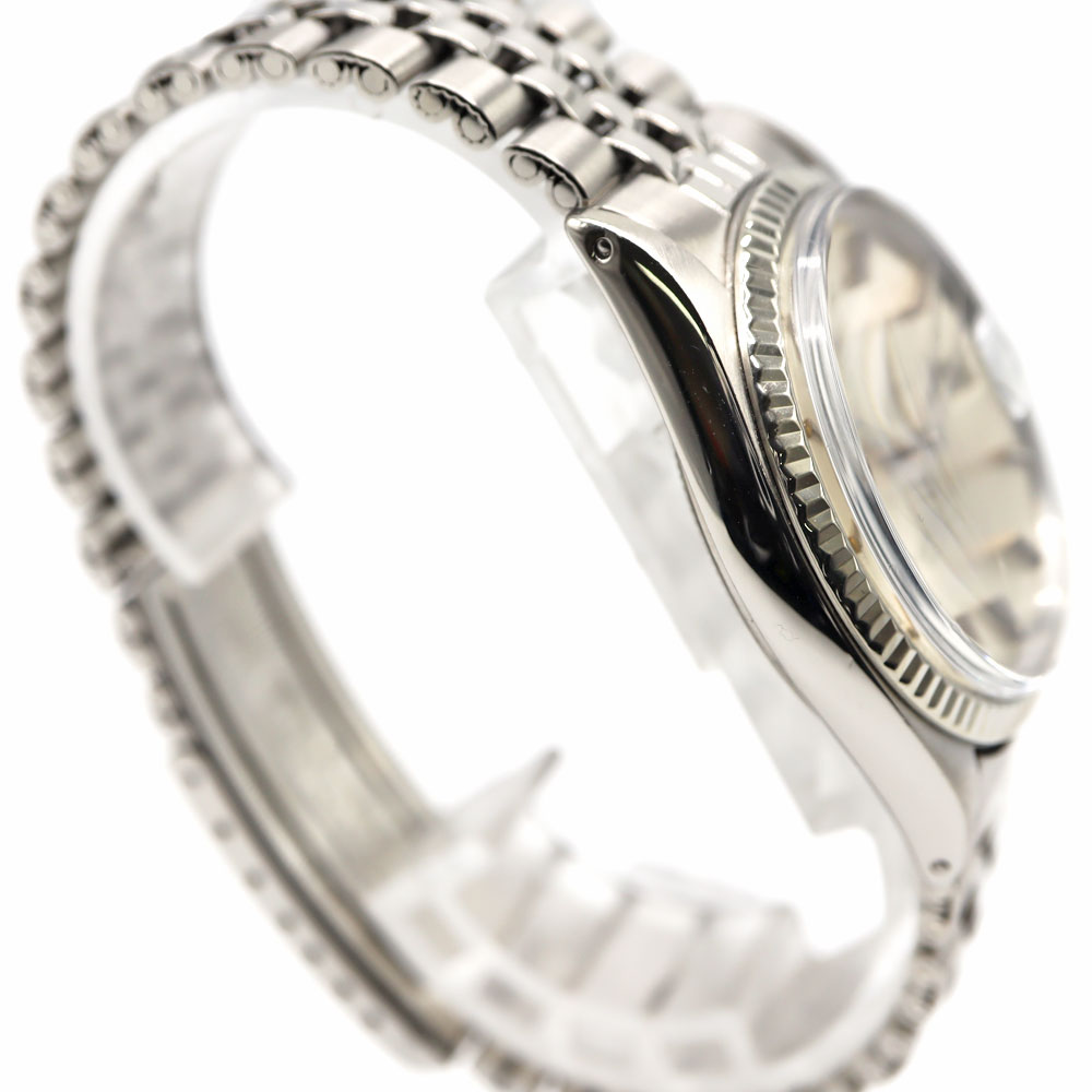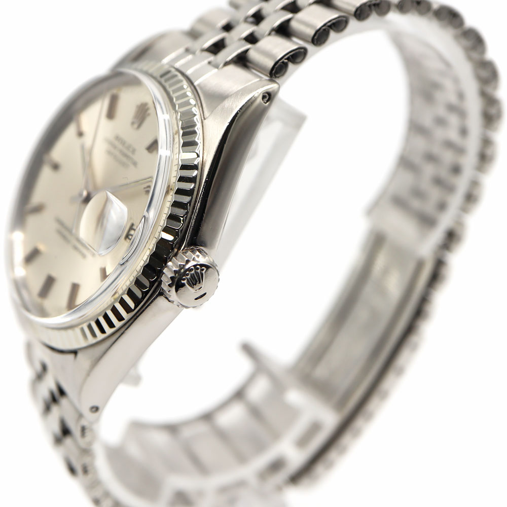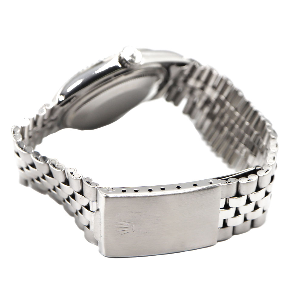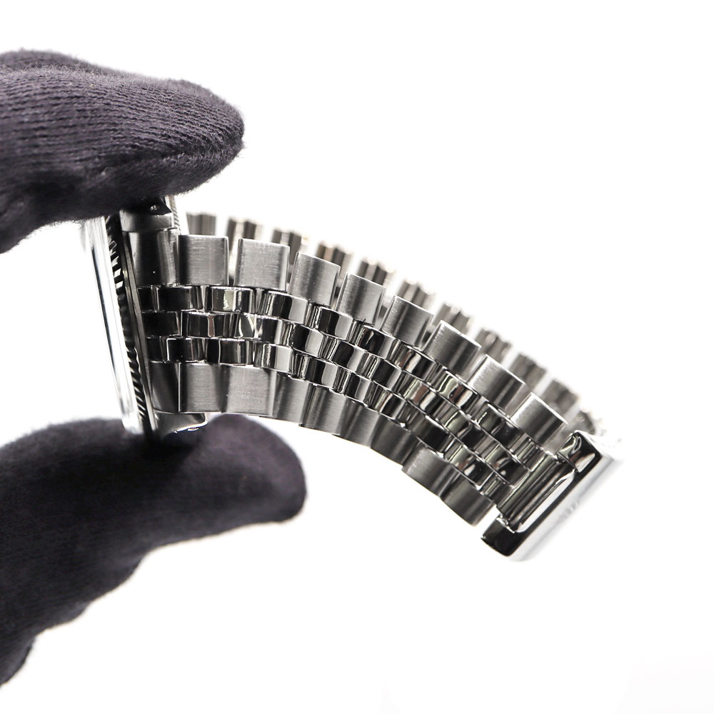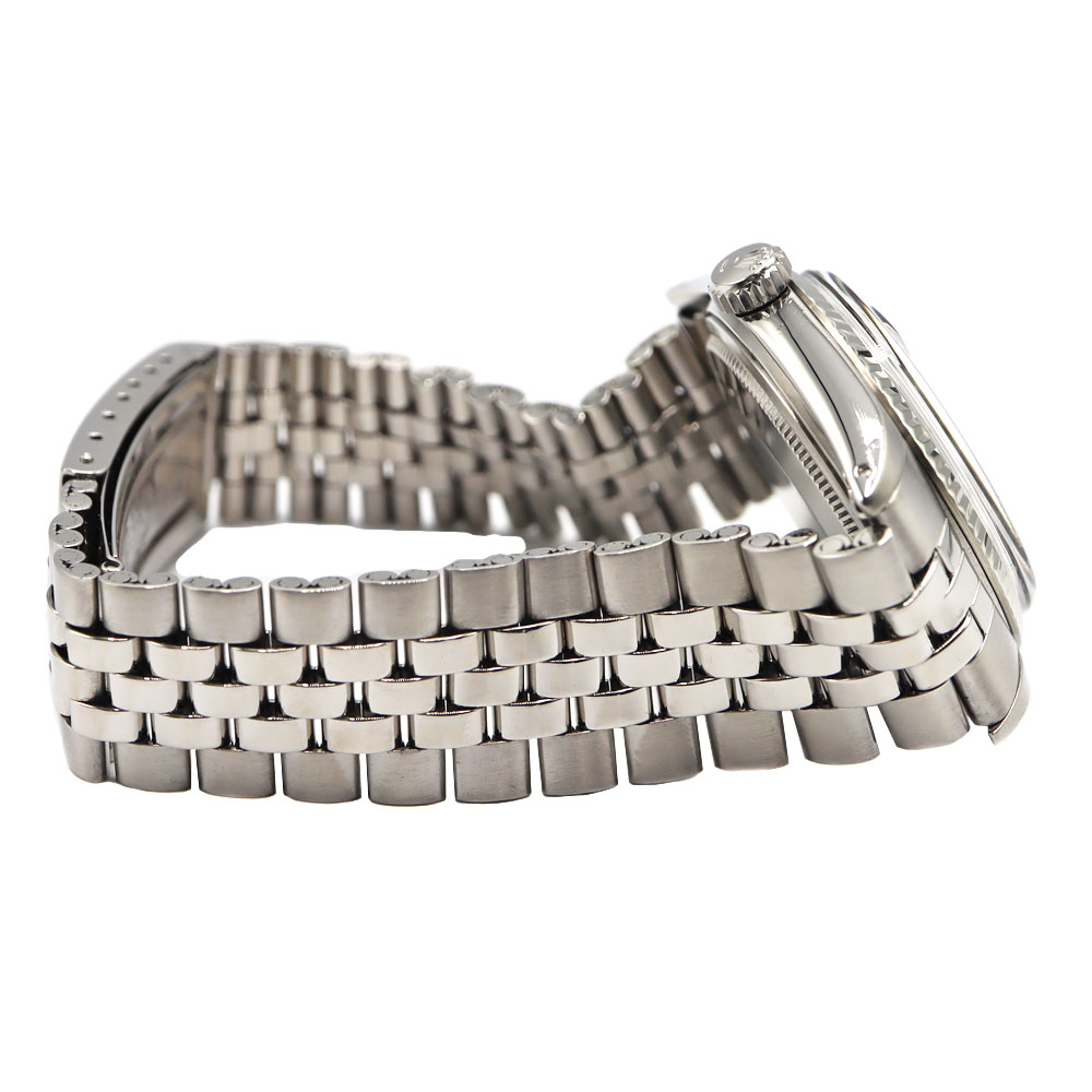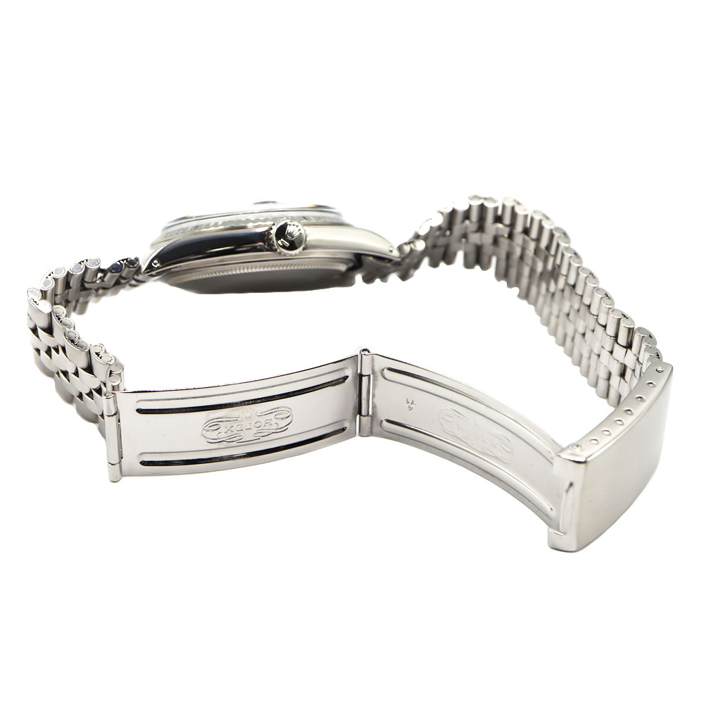 デイトジャストとは午前0時頃瞬時に日付が変わるデイトジャスト機構、全回転式ローターを搭載したパーペチュアル機構、ロレックス三大機構を搭載したモデルです。 シルバーの文字盤が非常にシンプルかつ上品です。