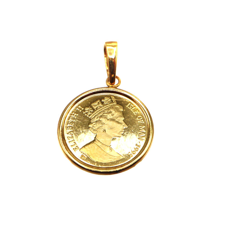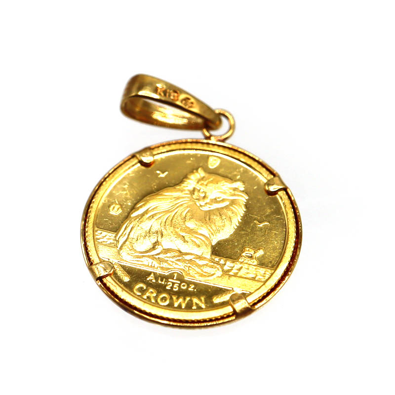 K18イエローゴールドの枠に「マントウキャットコイン(マン島キャットコイン)」をセットした、上品で希少なペンダントトップです。