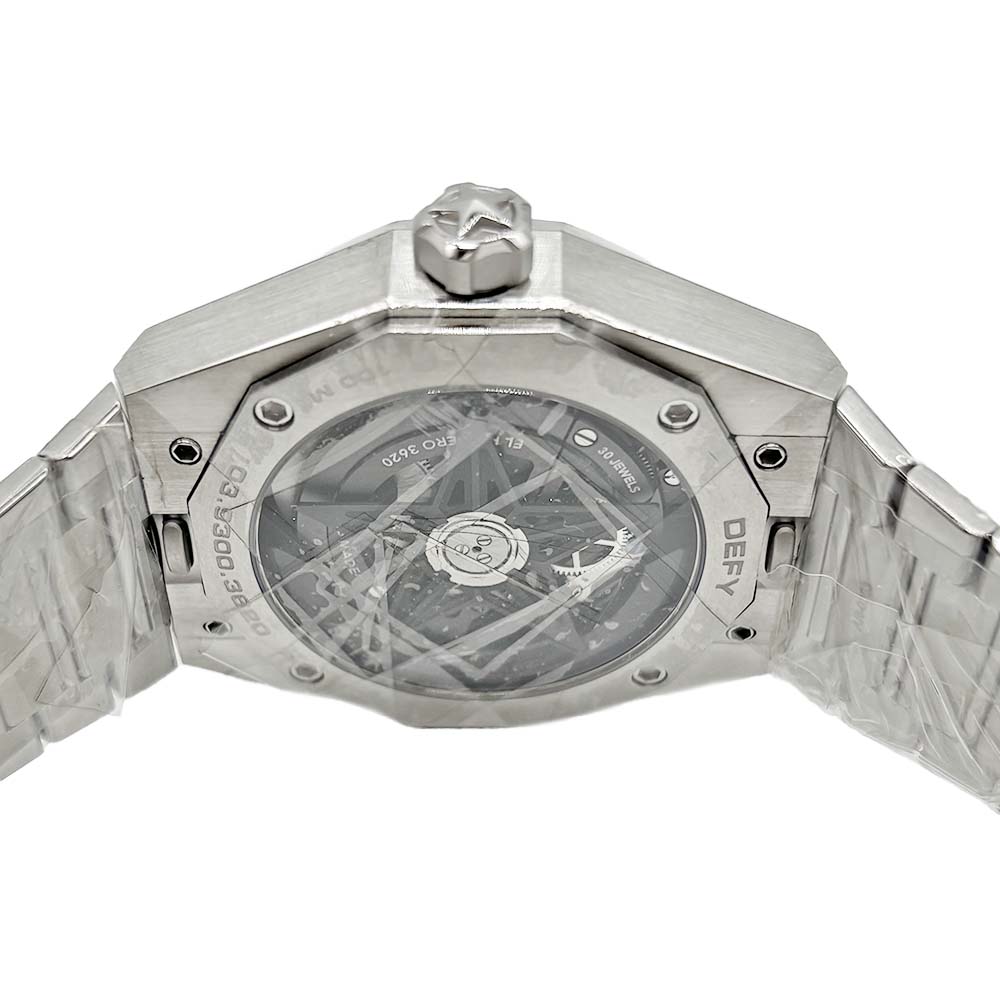 | 商品説明 | ゼニス デファイ スカイライン スケルトンは、毎時36,000振動の高振動自動巻ムーブメント「エル・プリメロ 3620 SK」を搭載し、6時位置のインジケーターで1/10秒を表示する精密スポーツウォッチです。