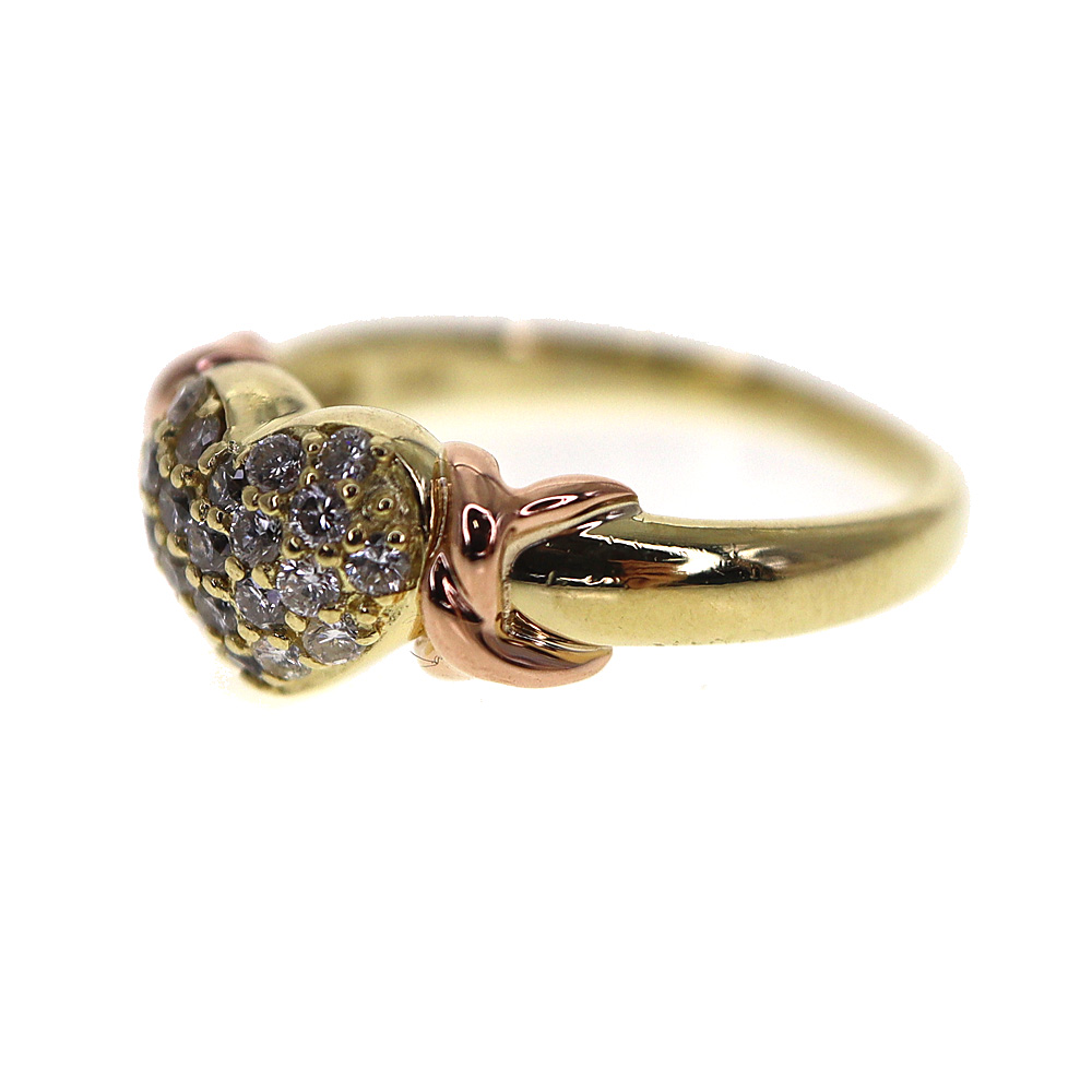 18金ゴールドを使用した華やかで可愛らしいハートモチーフリングです。 ハート部分は0.30ctのダイヤモンドがセッティングされています。 この機会に是非いかがでしょうか。