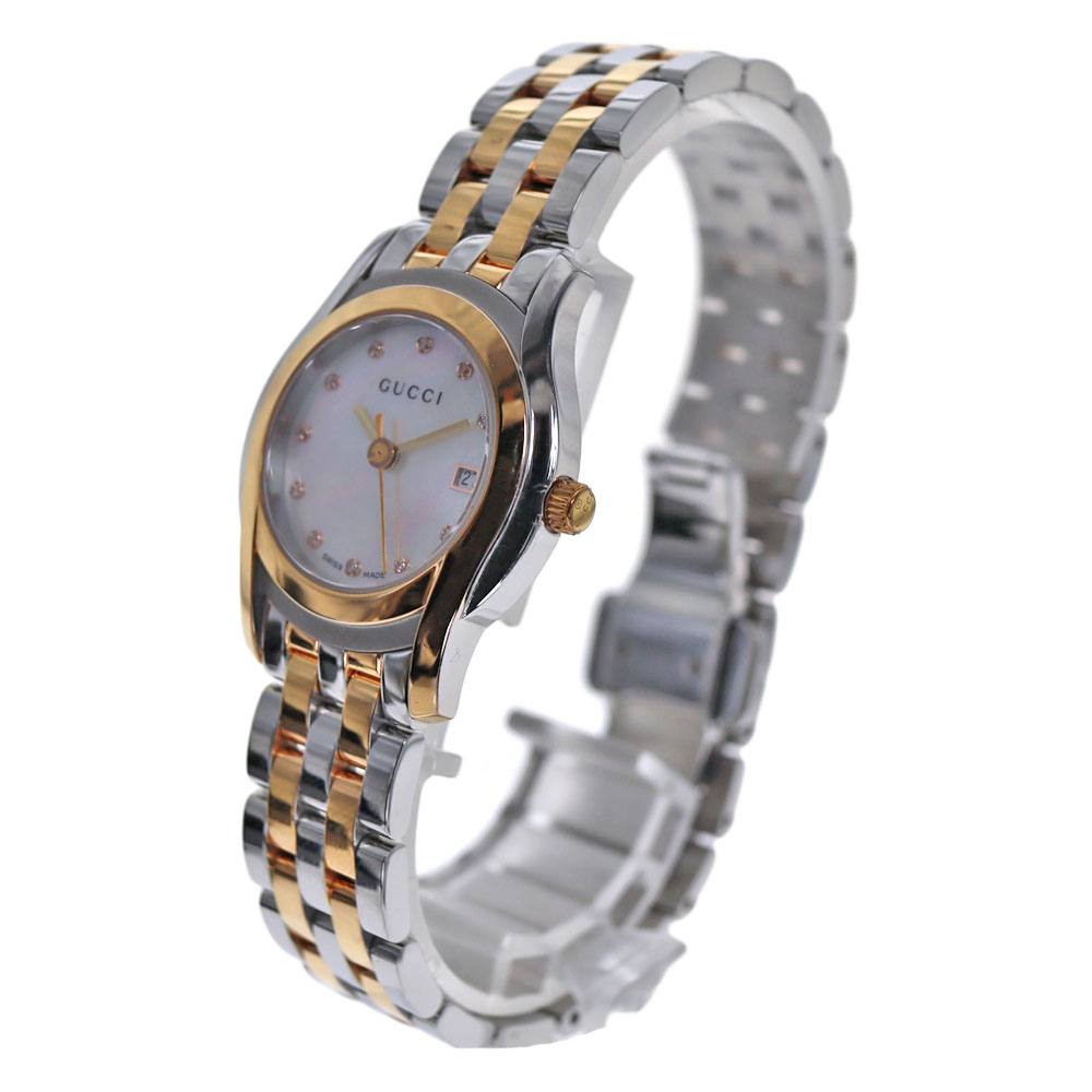 | 商品説明 | グッチのクオーツウォッチのご紹介です。 ホワイトシェルの文字盤に12Pダイヤがあしらわれた高級感あるお時計です。 シルバー×ゴールドカラーのコンビで他のアクセサリーとも合わせやすく普段使いからビジネスシーンまで活躍します。 この機会に是非いかがでしょうか。 ※尚、当サイトの販売金額より店頭での販売金額の方をお安く設定させて頂いております。予め、ご了承下さいませ。 |