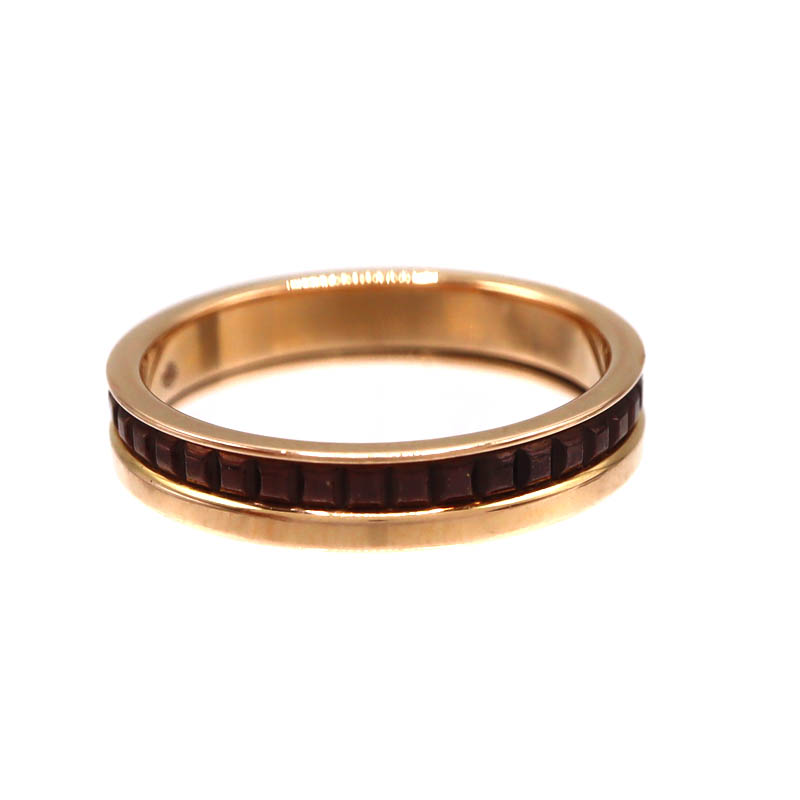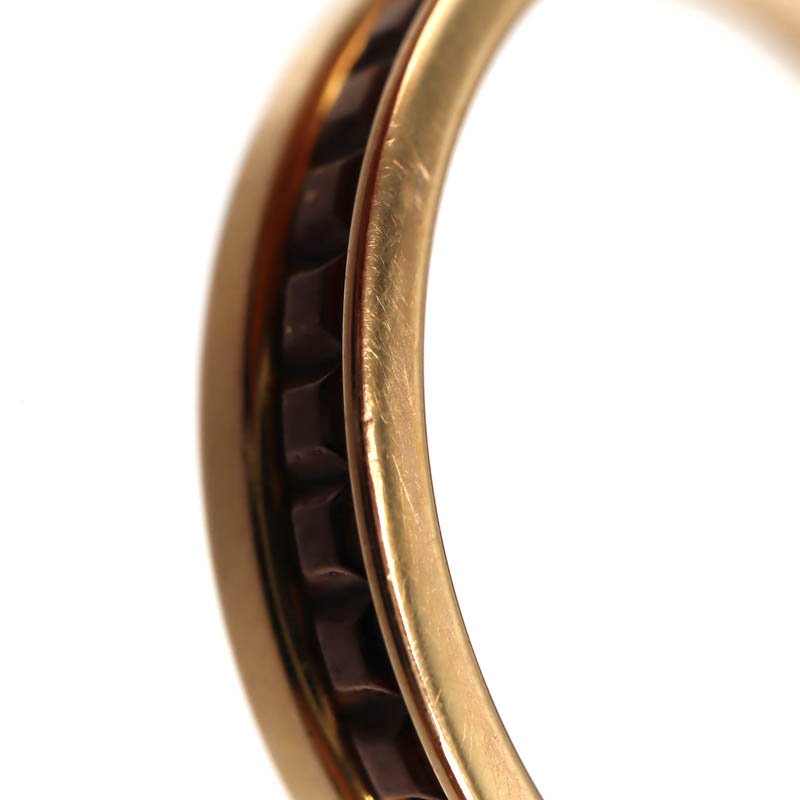 リング全周を飾るキャトルのアイコニックなモチーフは、異なる質感と色のコンビネーションが織りなす美しいデザイン。