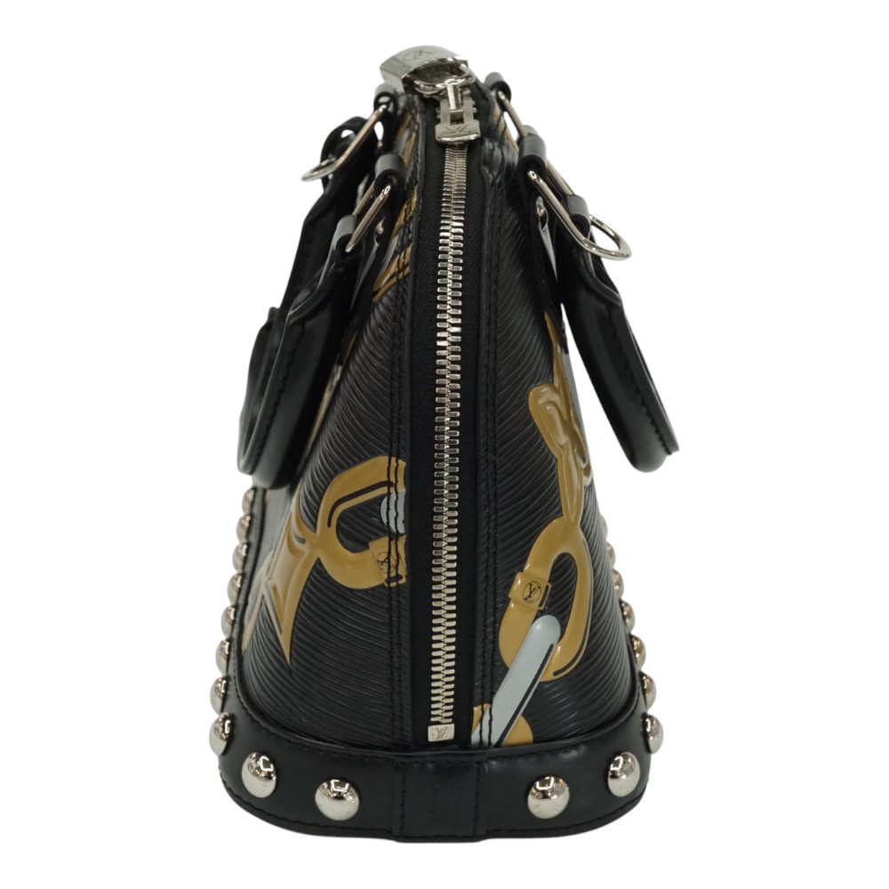 女性らしいフォルムが人気のアルマに、チェーンのプリントとスタッズが施されたクールなデザインです。 ファスナーがサイドの下の方まで大きく開くので物の出し入れがとても楽です。 色んなシーンでご使用いただけるお鞄です。 お探しの方はこの機会に是非いかがでしょうか。