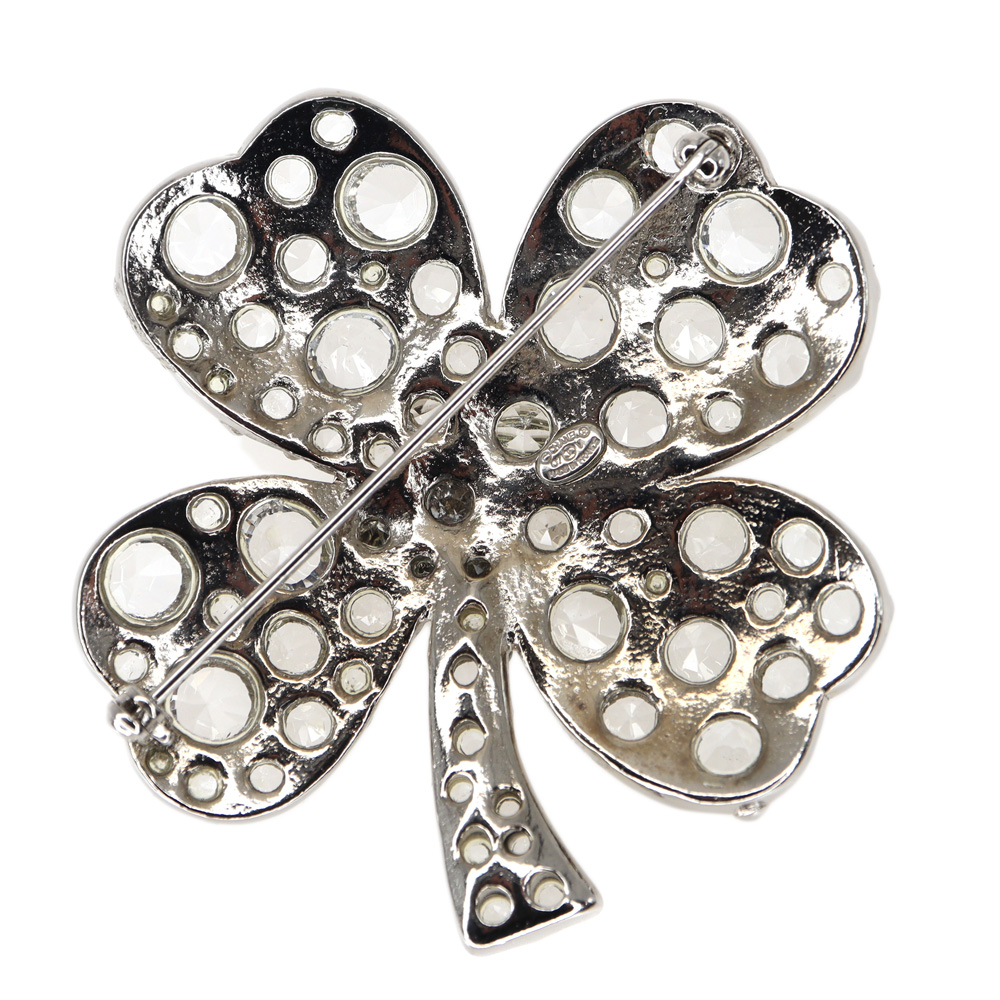 クローバーデザインの中央にココマークがデザインされたブローチです。 シルバーカラーにラインストーンが埋め尽くされたアイテムとなっており華やかかつ可愛らしいアイテムとなっております。 お探しの方はぜひこの機会にいかがでしょうか。