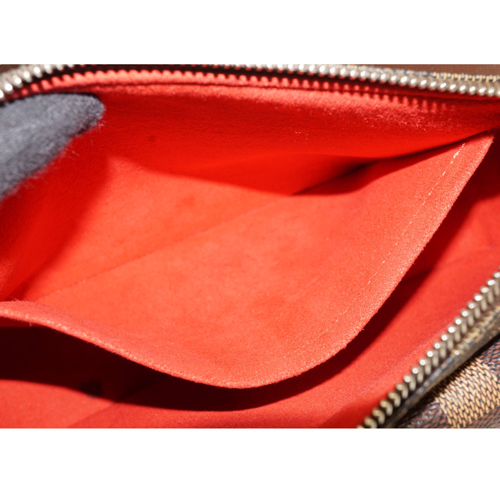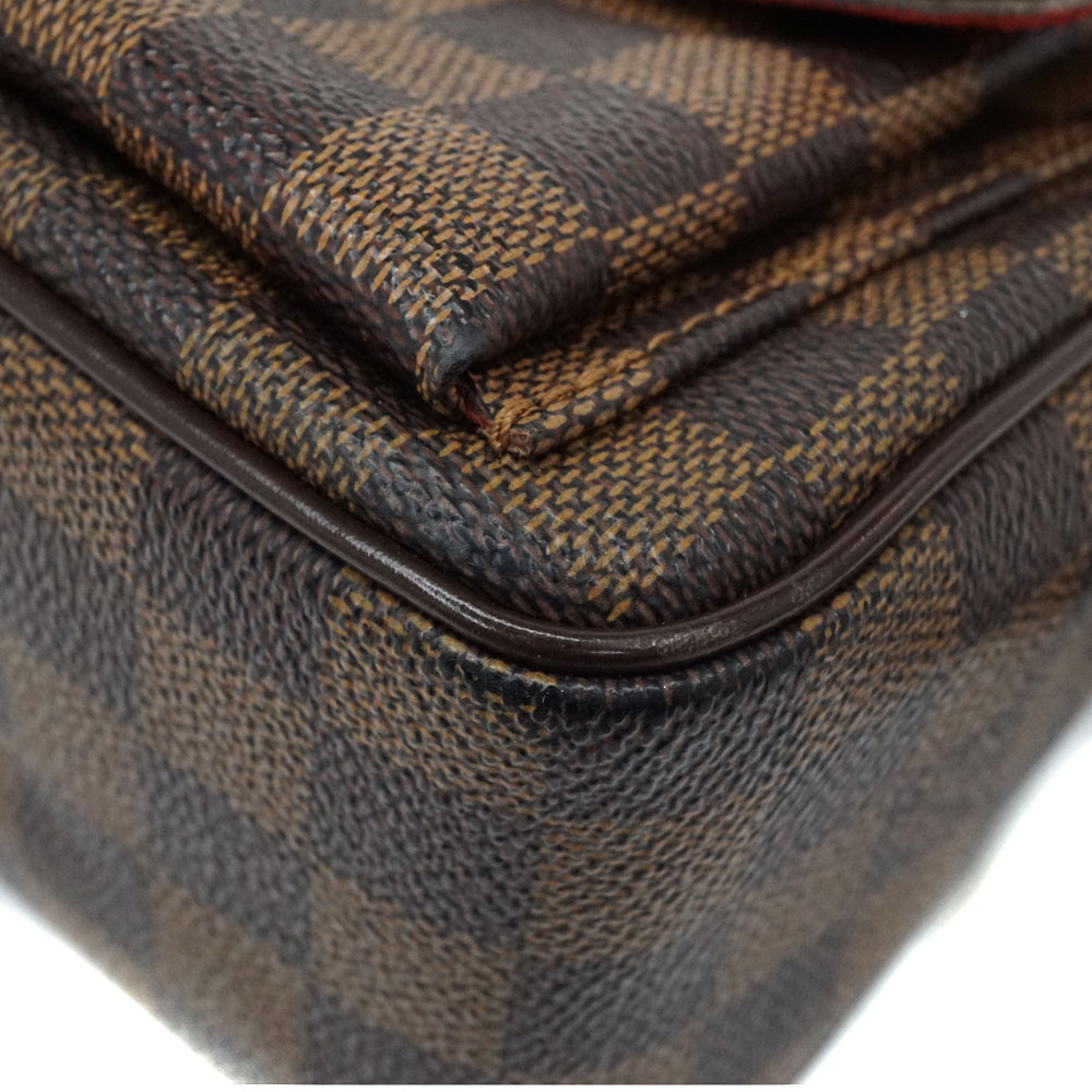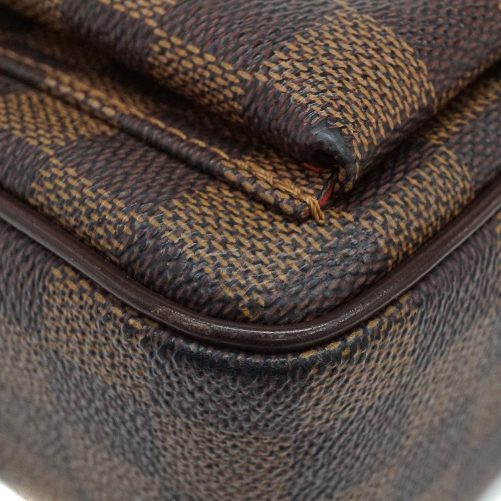 金具のついた前ポケットが印象的な、定番人気のダミエ・エベヌ柄のショルダーバッグです。 横長のサイズの為長財布等も収納して頂けます。 お探しの方はこの機会にぜひいかがでしょうか。