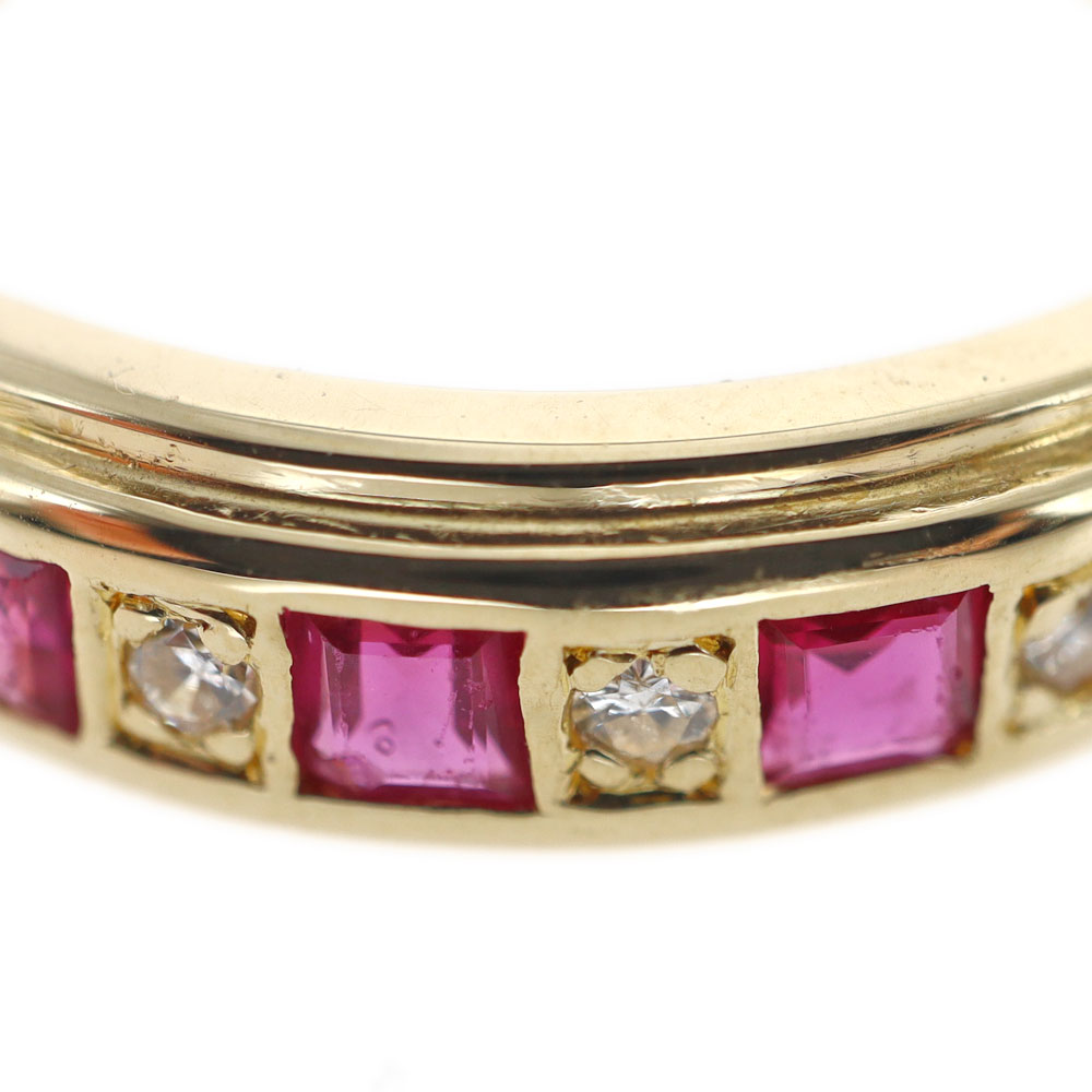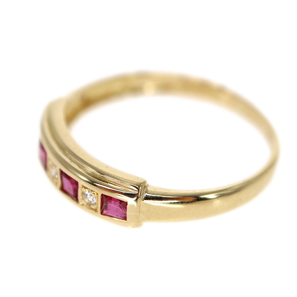 一列にセッティングされたルビーが美しい指輪です。 ルビーの間にダイヤモンドも施されており、より華やかさがあります。