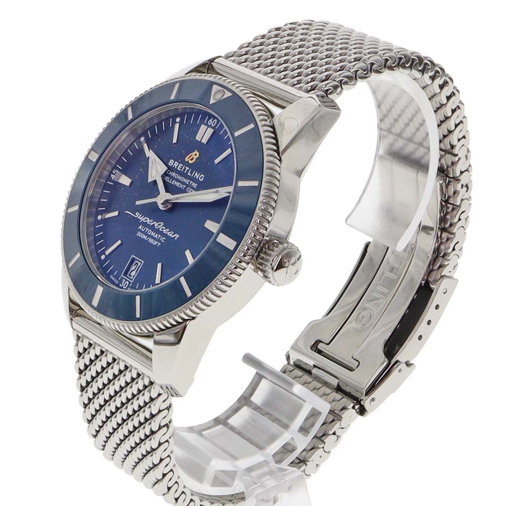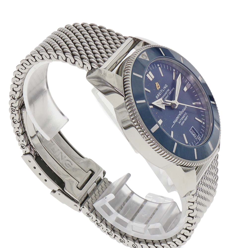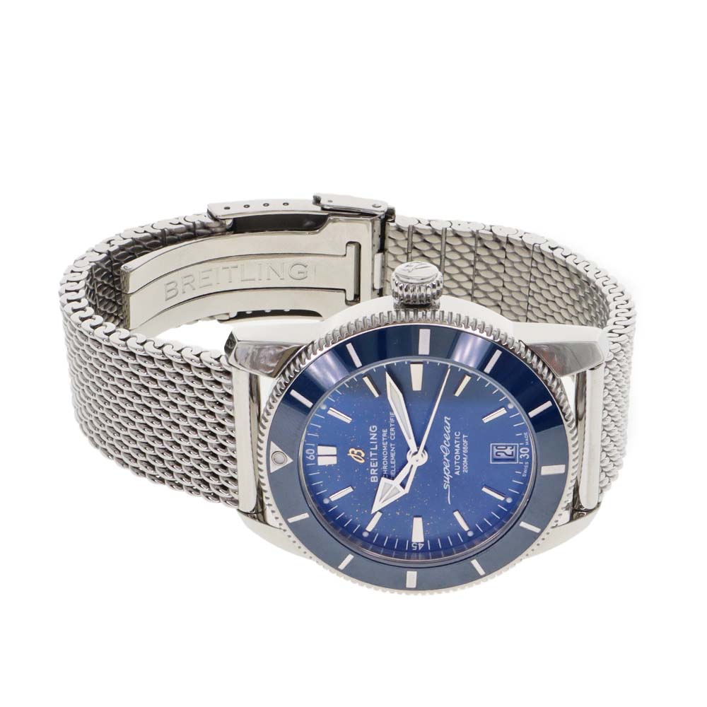 | 商品説明 | ブライトリングの「スーパーオーシャン A17392」は、プロ仕様のダイバーズウォッチとして設計された高性能モデルです。直径44mmのステンレススチールケースとブルーダイヤルを備え、視認性に優れた大ぶりのインデックスと針を採用。日常使いから本格ダイビングまで幅広く対応します。
