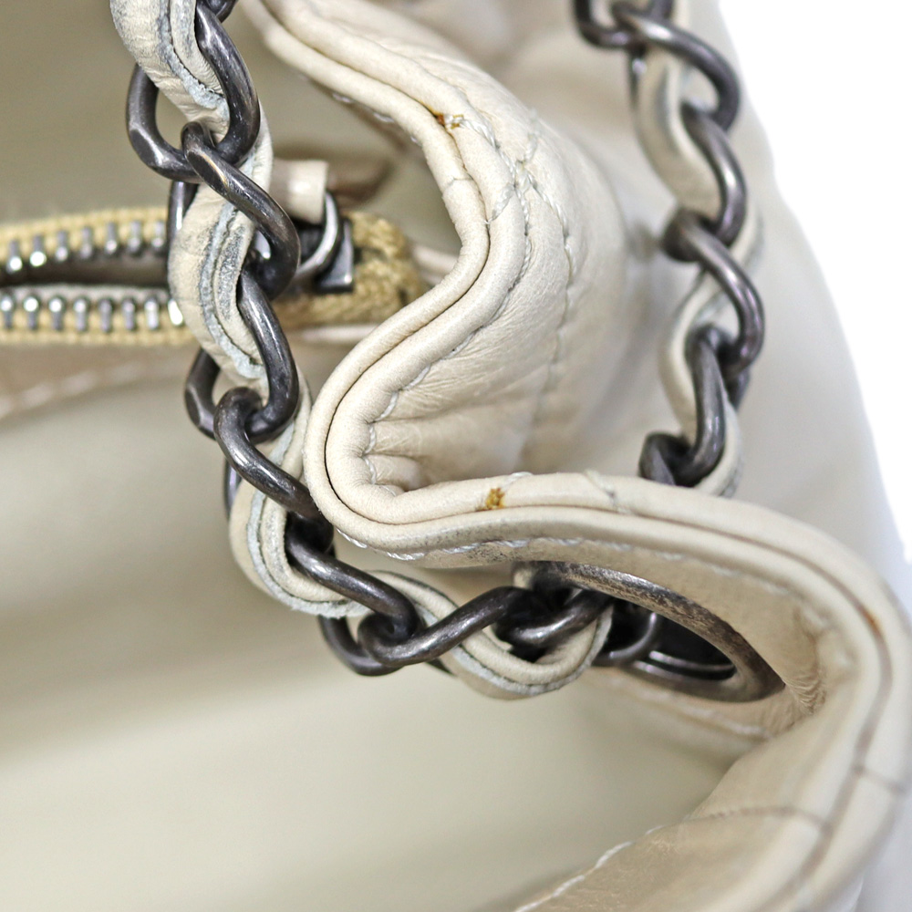 | 商品説明 | シャネルのチェーンショルダーバッグのご紹介です。 柔らかい印象のクリーム系のカラーリングにヴィンテージカーフの素材が映えるショルダーバッグとなっております。 ブラックカラーのヴィンテージ加工が施された金具が目を惹くアイテムとなっており、高級感もありながらカジュアルな印象のお品です。 お探しの方は是非いかがでしょうか。