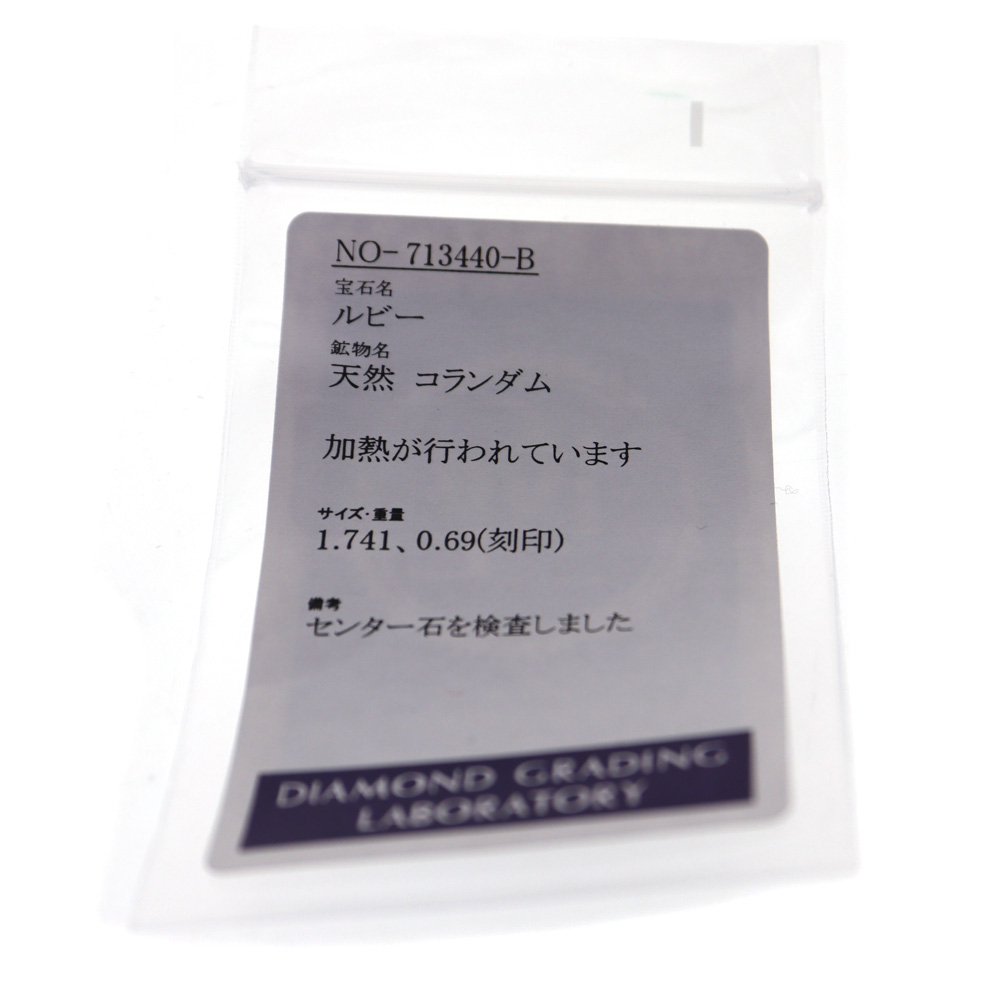 | 素材 | K18【18金】 Pt900【プラチナ900】 ダイヤモンド:0.69ct ルビー:1.741ct |