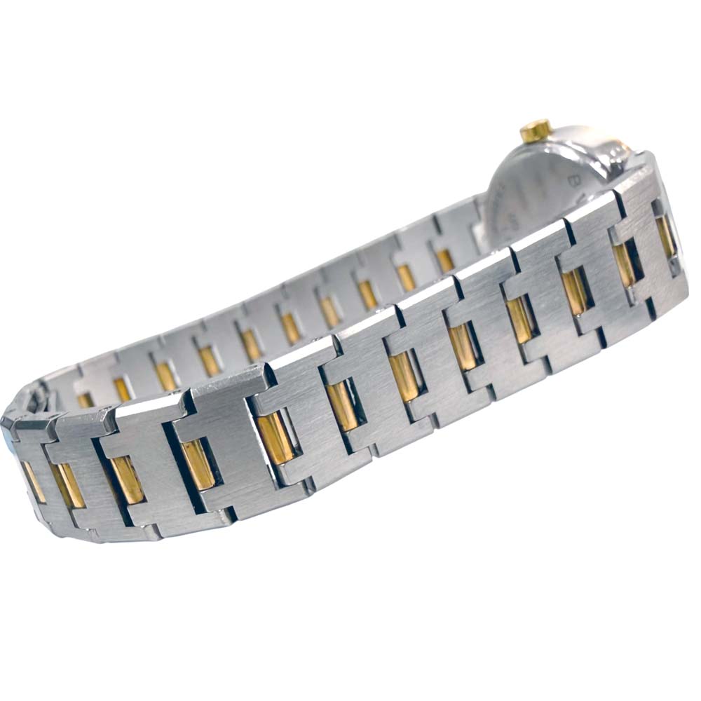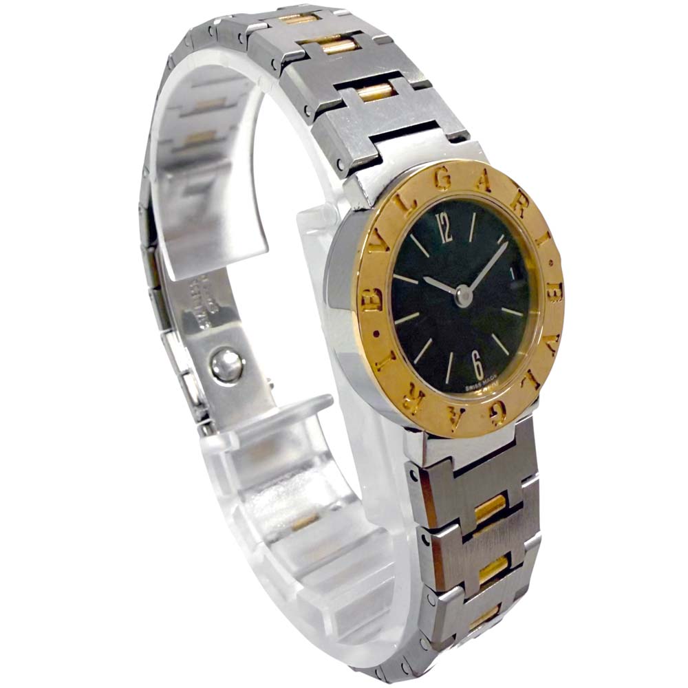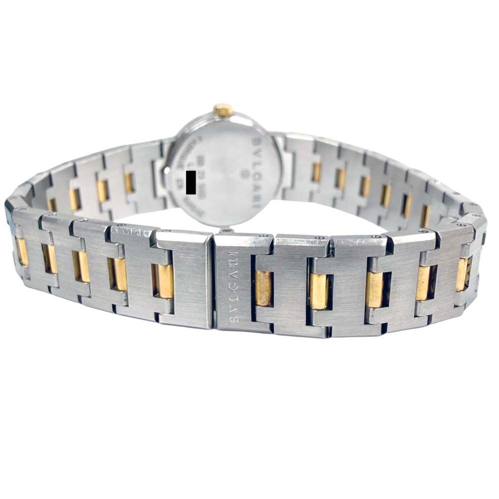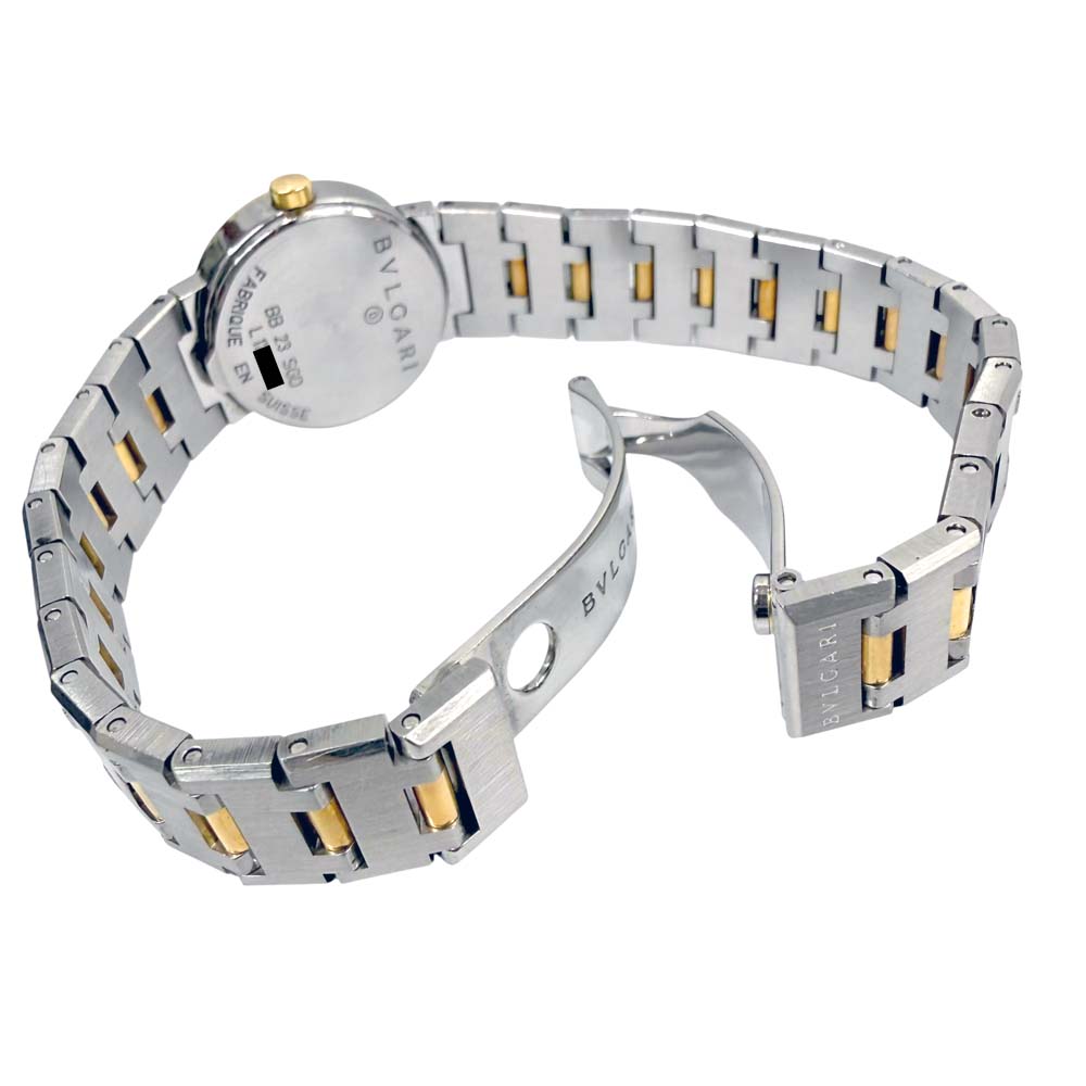 | 商品説明 | ブルガリのBB 23 SGD、通称「ブルガリブルガリ」は、エレガントなデザインが特徴の腕時計です。ケースはゴールドとステンレススティールのコンビネーションで、ラグジュアリーな印象を醸し出しています。文字盤にはブランド名が刻まれており、シンプルながらも高級感があります。クォーツムーブメントを搭載しており、信頼性のある精度を保ちます。ベゼル部分には「BVLGARI BVLGARI」と刻印されているデザインが、ブランドのアイコニックなスタイルを強調しています。