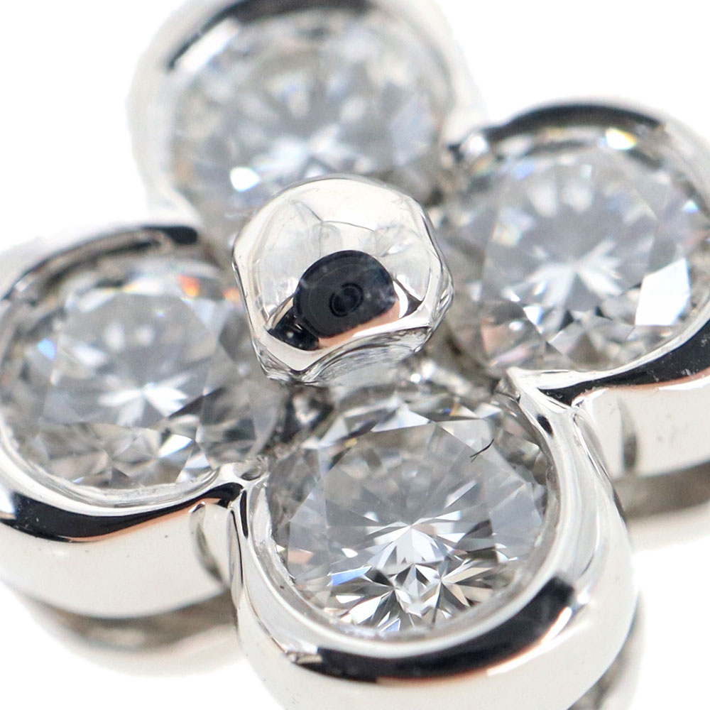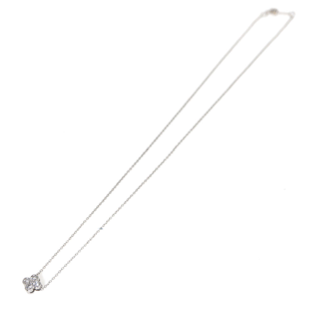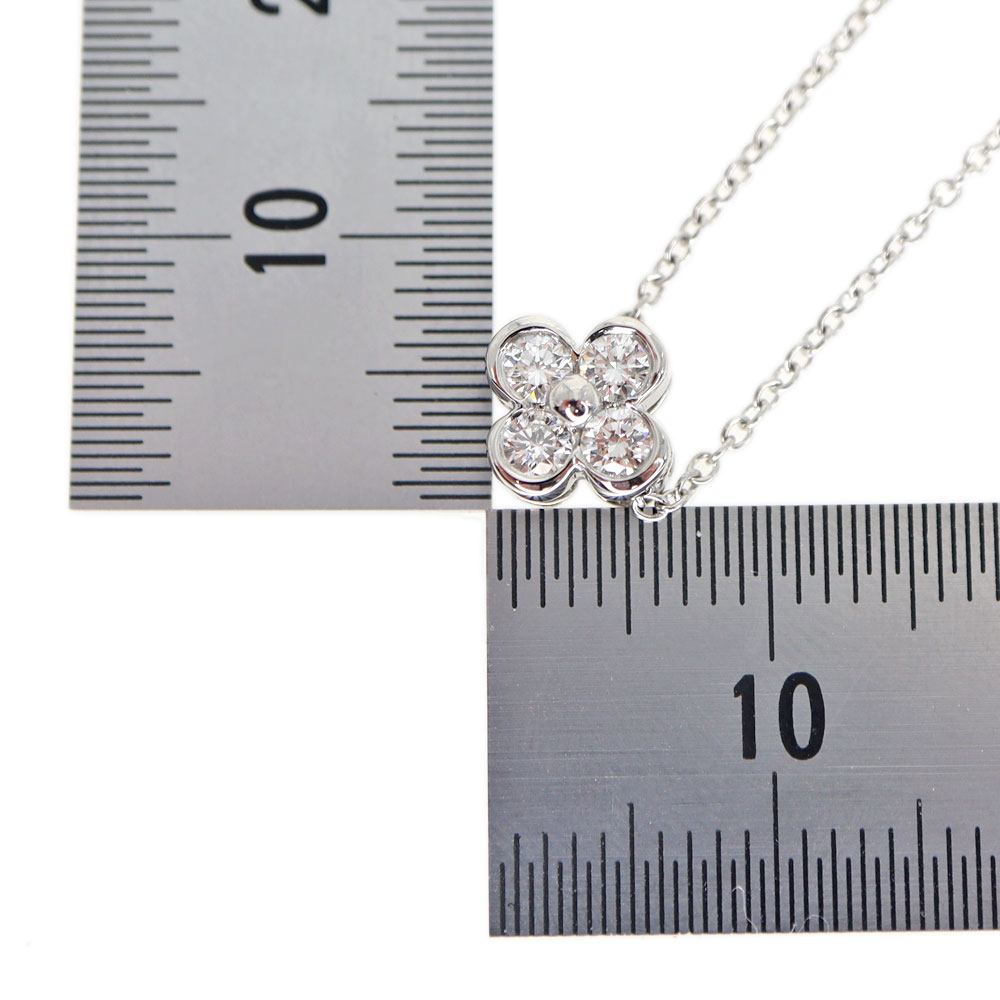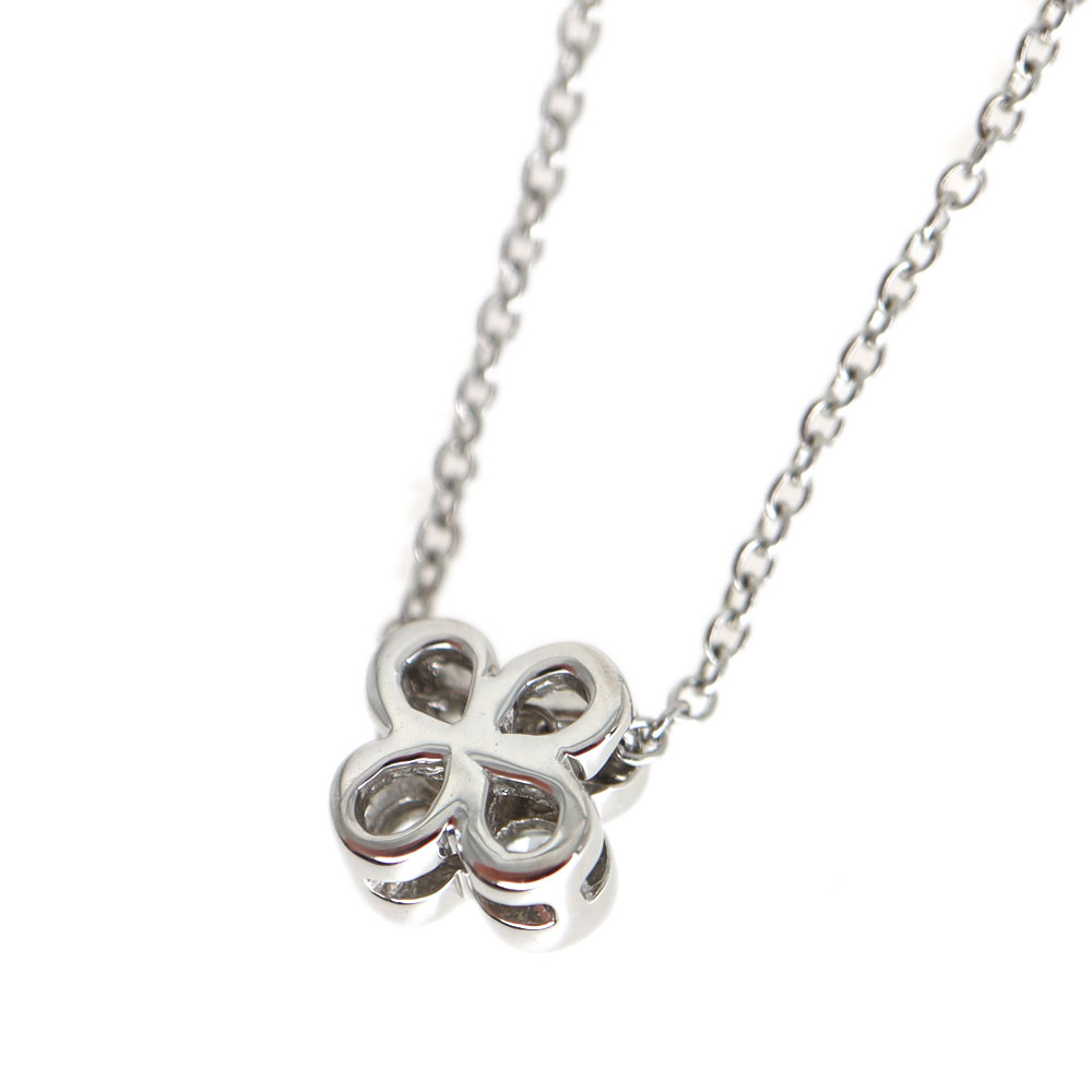 4つのダイヤモンドが花のようなモチーフになっているネックレスです。 控えめなサイズ感で、オン・オフ関係なくお使い頂けるデザインなので、使いやすいアイテムです。 キラキラと輝くダイヤモンドが首元を華やかにしてくれます。