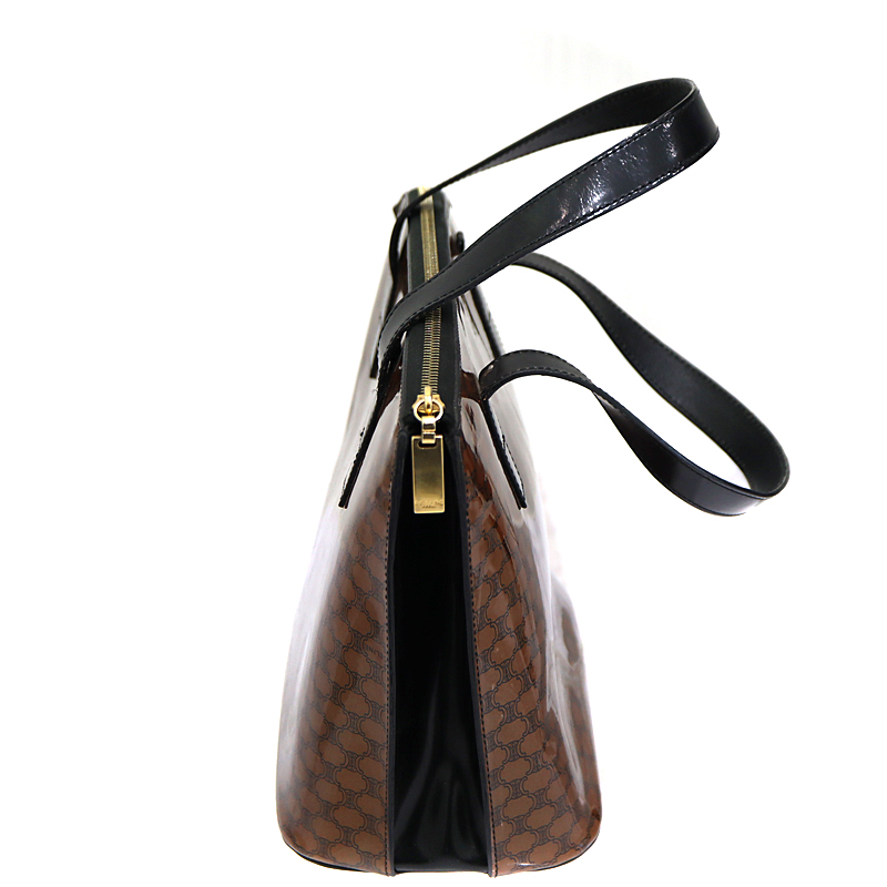 セリーヌの定番デザイン「マカダム柄」をあしらった、エナメル素材のトートバッグでございます。