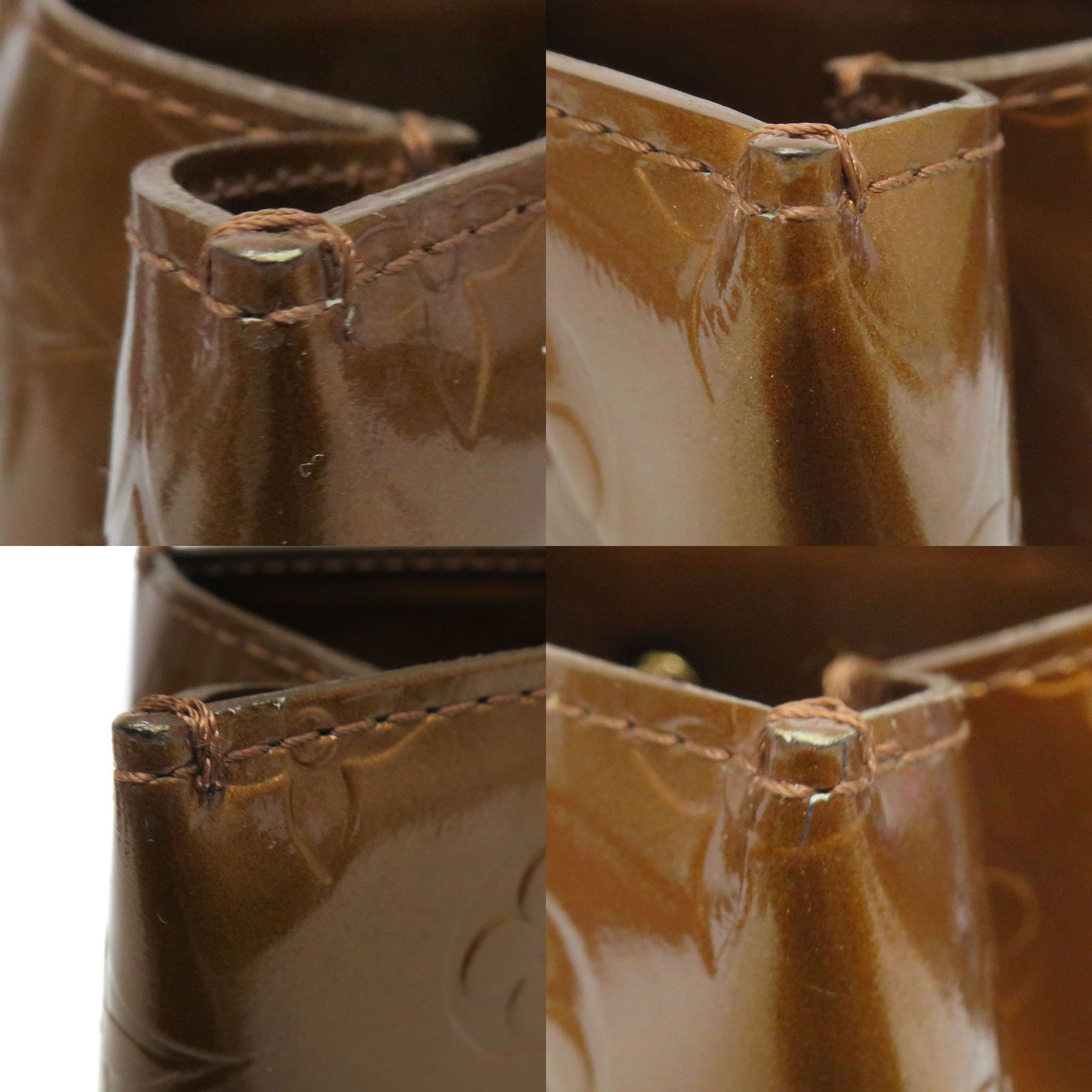| 商品状態 | ■型崩れ ■表面スレ、剥がれ ■角スレあり ■内側に汚れ箇所あり ■内側パテントレザー部分に色移りあり ■ヌメ革に若干の汚れ・ヤケ・シミ・スレあり ■店頭でも販売しているため、画像に無いキズ等が付く可能性がありますので予めご了承ください。 |