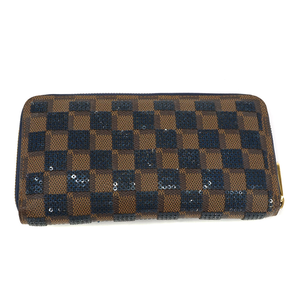 人気のダミエ柄にスパンコールがあしらわれたラウンドファスナー財布になります。