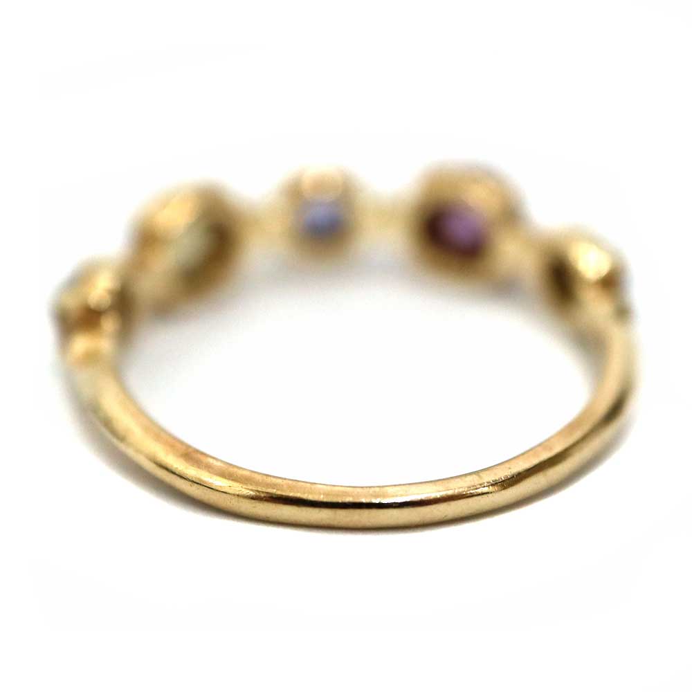 色彩の異なるストーンをリズミカルにあしらった、マルチストーンリングです。 石座や爪のデザインにはアガットらしいアンティーク調のニュアンスが感じられ、甘さの中に落ち着いた大人の雰囲気を演出してくれます。 この機会に是非いかがでしょうか。