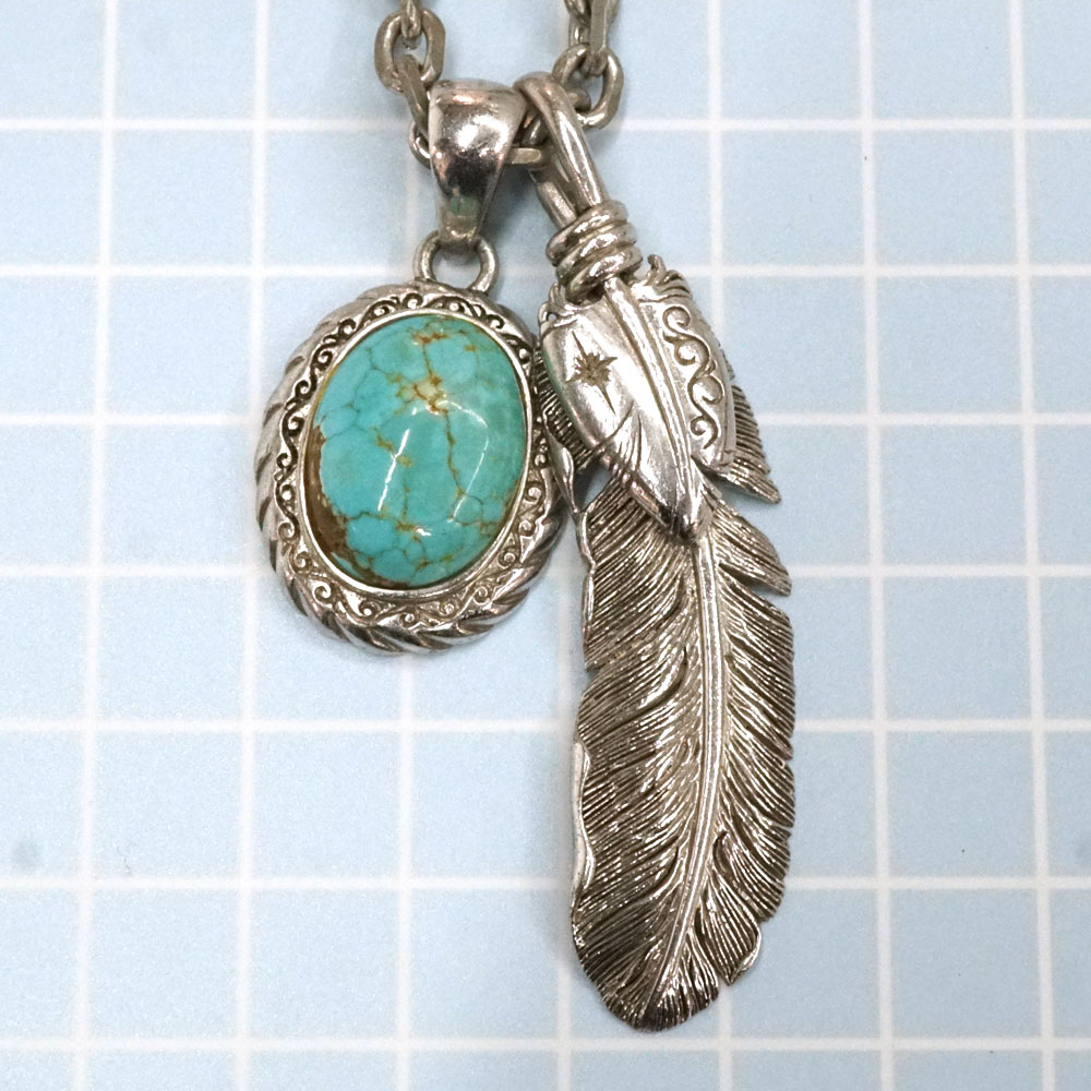| 商品説明 | SV925のデザインネックレスが入荷致しました。 大ぶりのフェザーとターコイズが目を惹きます。 ぜひこの機会にいかがでしょうか。
