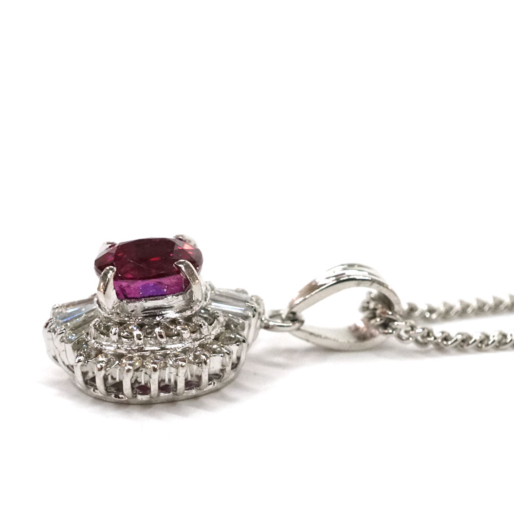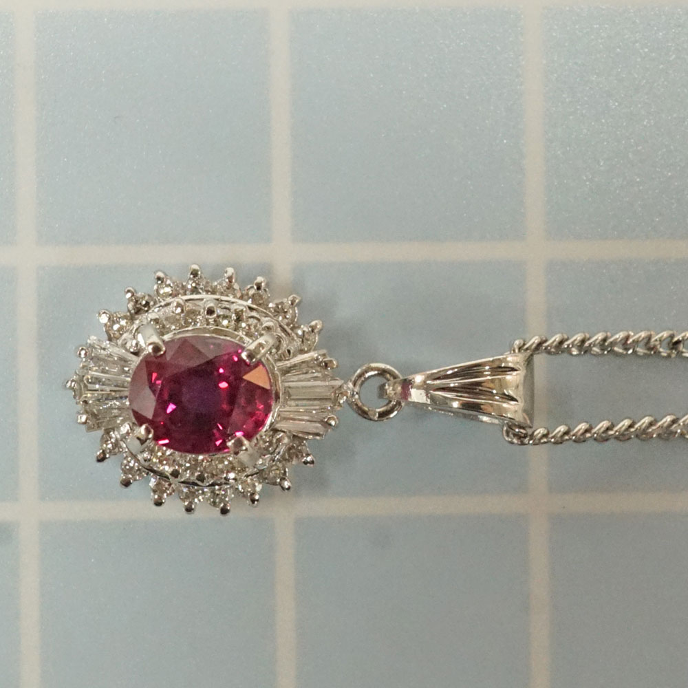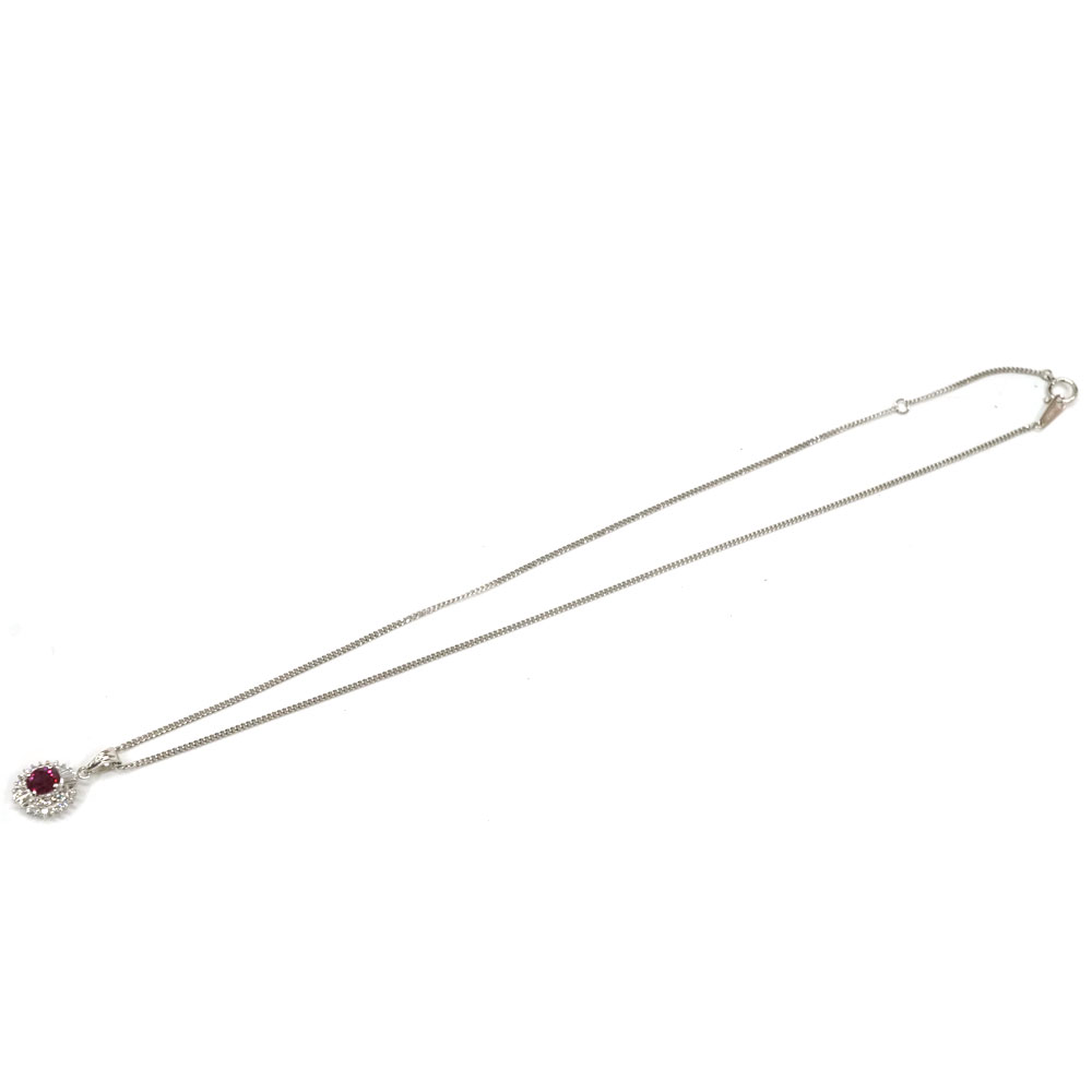 ダイヤモンドとルビーが綺麗に輝くデザインで程よい存在感あるネックレスです。 首元のアクセントにいかがでしょうか。
