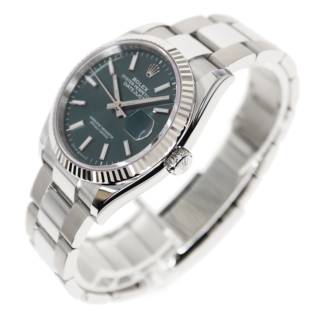 | 商品説明 | ROLEX【ロレックス】 126234 デイトジャスト36 紹介です。 ロレックスの中でも人気の高いデイトジャスト。 目を引くミントグリーンに美しいサンレイ仕上げが映えるあらゆるシーンで華やかかつシンプルに輝く仕様のデイトジャスト。 1945年に登場してから流行に左右されないデザインで愛され続けているモデルの現行モデルです。 重量感もあり着け心地も抜群です。